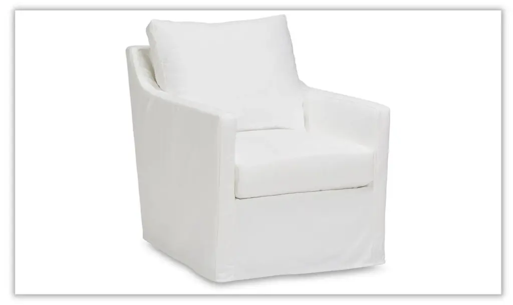 Enhance your home decor with the Miles Chair, an embodiment of comfort and elegance. This chair features a Feather Blend cushion that provides a heavenly softness and support for your ultimate relaxation. Included with your purchase, the slipcover adds versatility and protection, maintaining the chair's pristine condition. The Swivel base allows you to effortlessly glide, ensuring optimal comfort and convenience. The chic Track arm design perfectly complements the chair's contemporary aesthetic, making it a stylish addition to any room. Elevate your seating experience with the Miles Chair.This is a Custom Model. Call us for Quote.