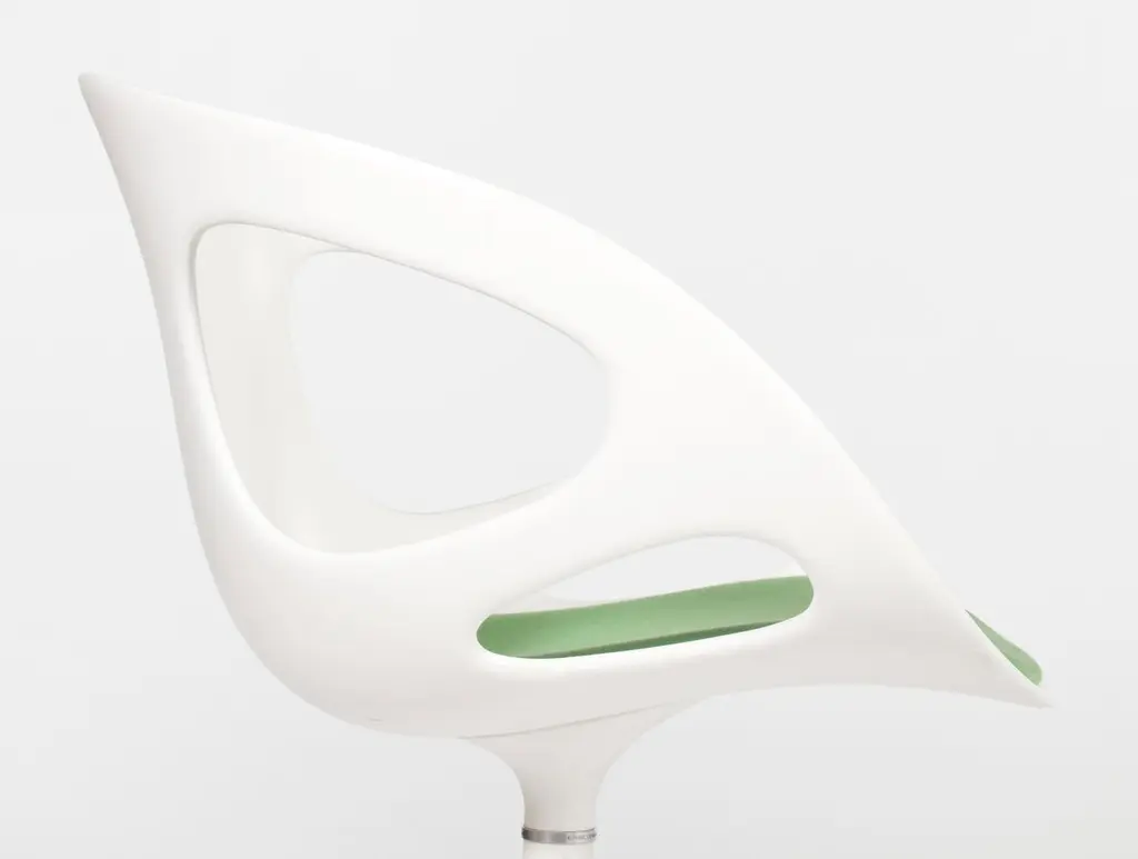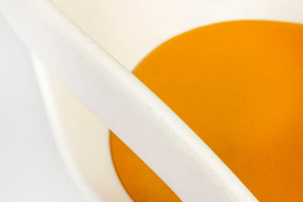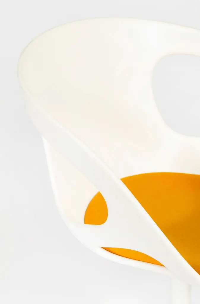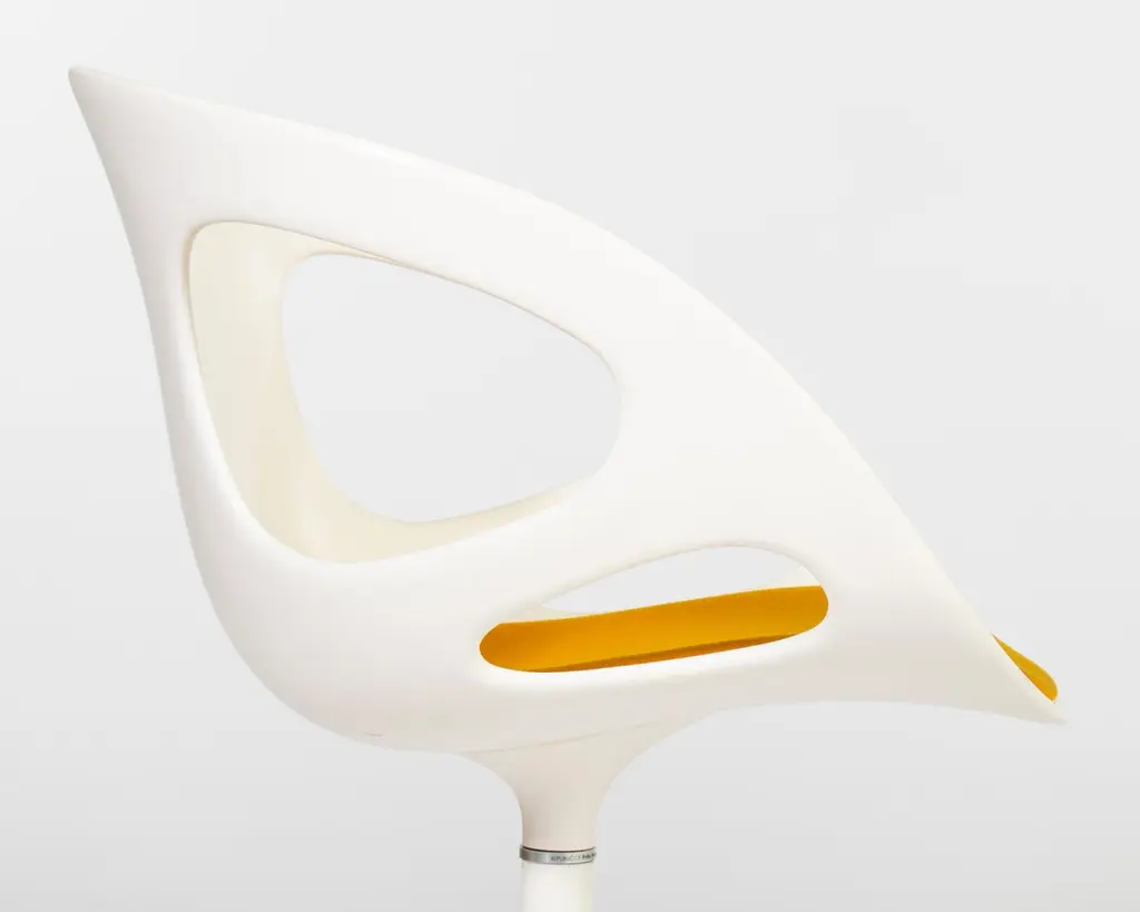 Rin dining swivel chair sets of 2 manufactured by Danish Fritz Hansen, in collaboration with Japanese designer Hiromichi Konno.The design is inspired by natural ideal forms of birds' nests.With their elegant silhouettes, the pieces can serve various purposes in dining, living and office spaces.The chairs are equiped with high-quality swivels, that allow 360 degree rotation.The white plastic moulds show traces of usage, the green and yellow upholstery has maintained its original flair.The fusion of Danish and Japanese design renders any interieur a contemporary and modern elegance.
