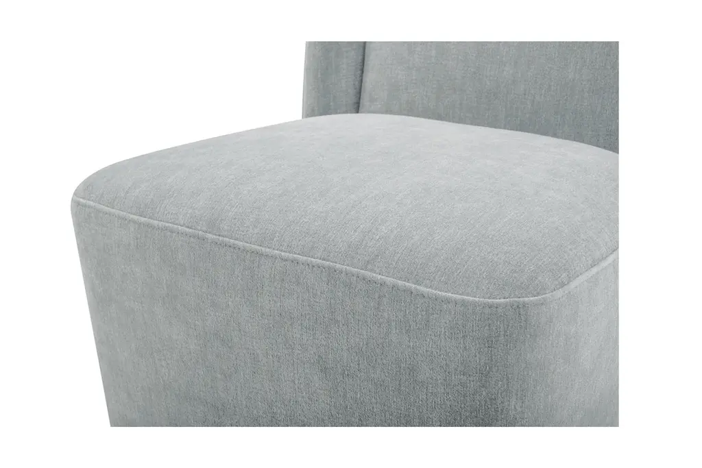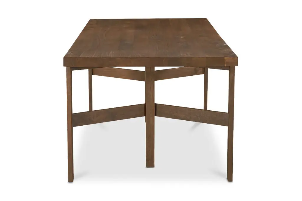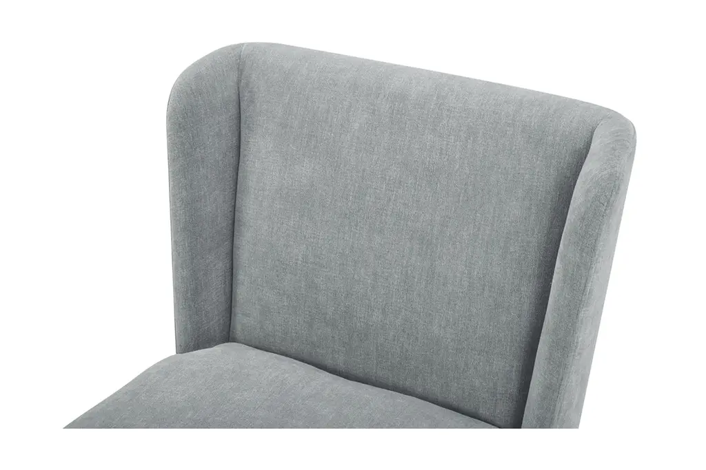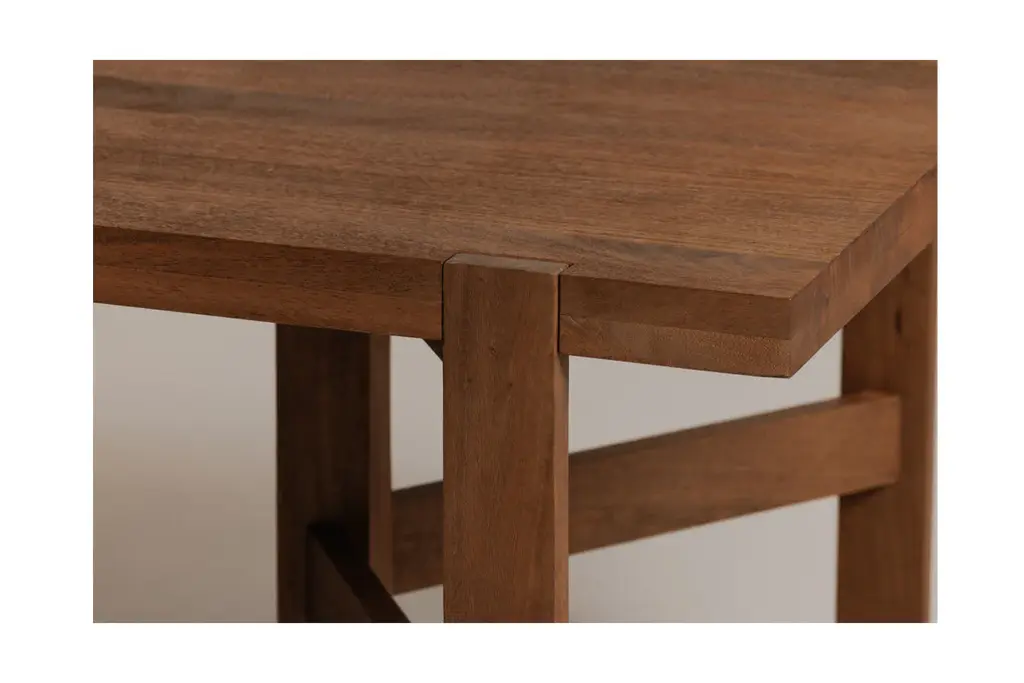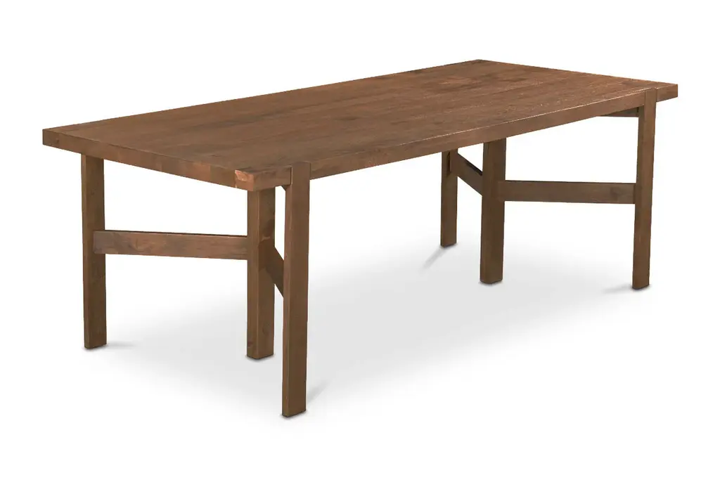 The Gallagher/Darla Dining Bundle pairs one Gallagher Dining Table with four slate green Darla Rolling Dining Chairs. Invite a touch of natural charm into your dining room with the Gallagher Dining Table. It features eco-friendly mango wood construction, sandblasted with a warm brown finish that showcases the wood's natural grain variations. The silhouette is unique and contemporary, balancing a sleek rectangular surface atop angular, geometrically configured legs. Its generous size comfortably seats up to six people. Prominent joinery adds visual interest to the table and showcases its high-quality craftsmanship. Experience cloud-like comfort with the luxurious Darla Rolling Dining Chair. Sink into its generously padded high-density foam seat cushion and backrest, wrapped in soft, durable polyester fabric. Metal casters and a 360-degree swivel mechanism provide convenient mobility. Darla Chair effortlessly enhances any space, making dining a delight.