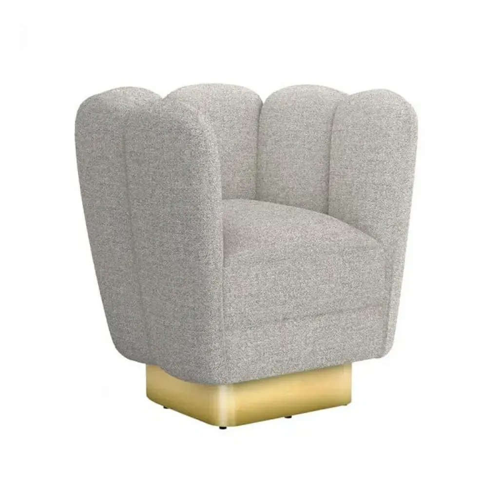 Offered in a range of luxe fabrics, the plush Gallery Swivel Chair makes a glamorous, Art Deco-inspired statement.