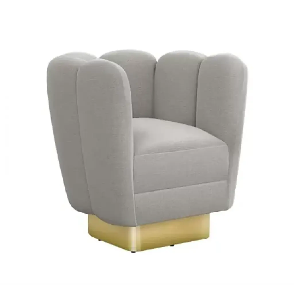 Offered in a range of luxe fabrics, the plush Gallery Swivel Chair makes a glamorous, Art Deco-inspired statement.