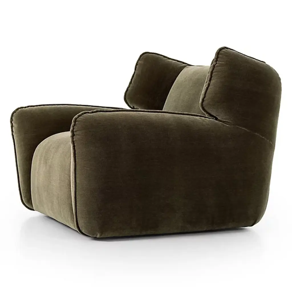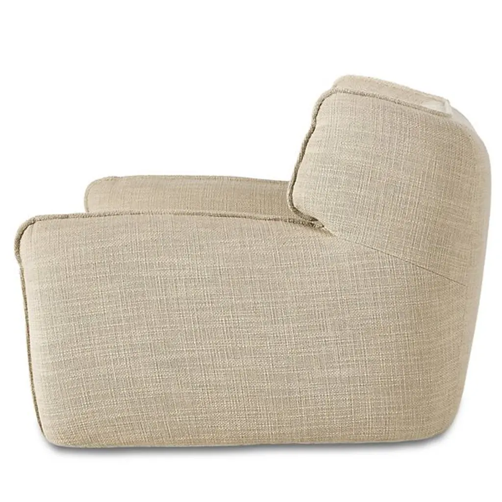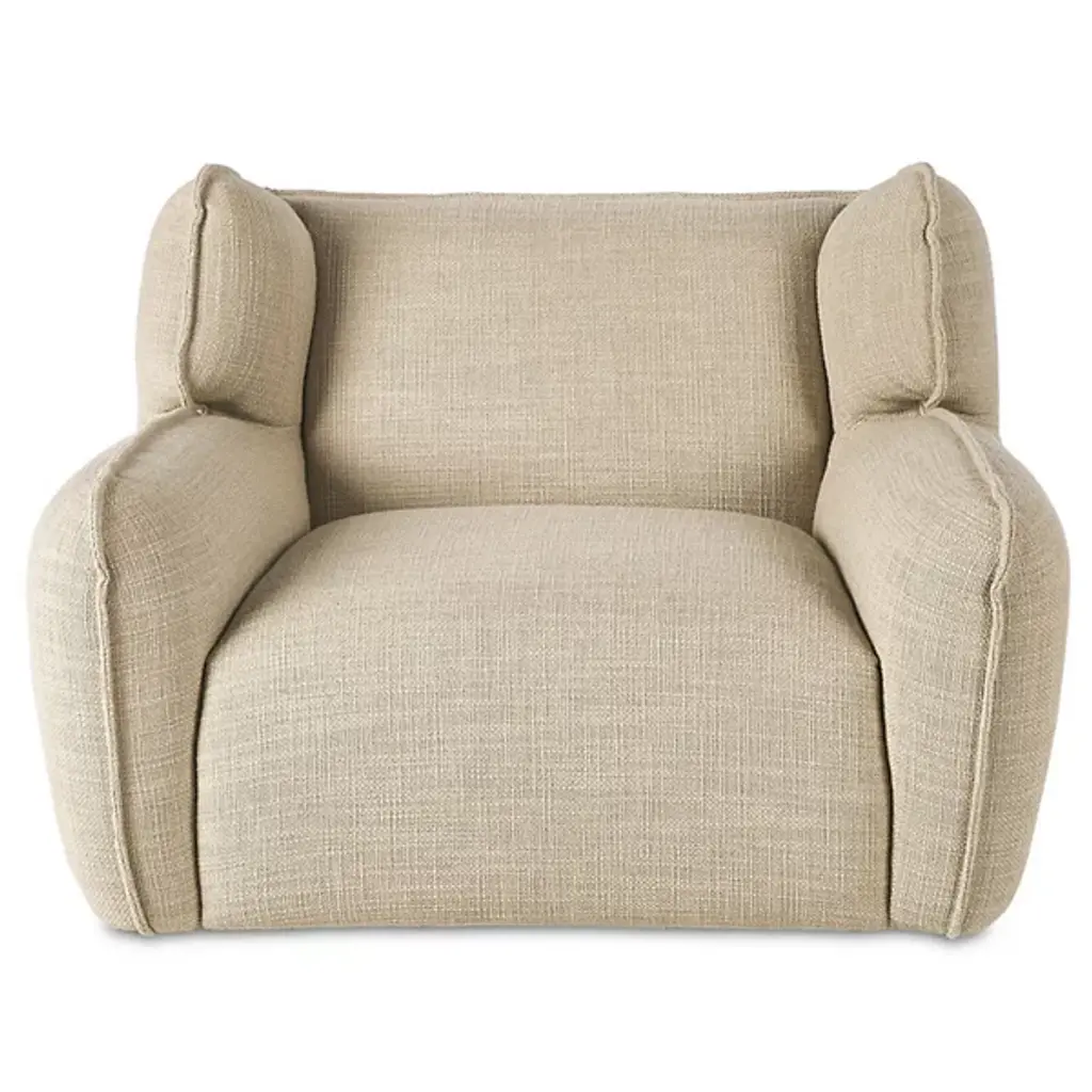 The Garland Swivel Chair from Four Hands reimagines the classic wingback design optimized for modern living comfort. With generously scaled proportions and exaggerated arms wrapped in soft, strong fabric, this inviting chair creates a personal sanctuary for ideal for relaxation. The thoughtfully pitched seat encourages perfect repose, while a smooth 360-degree swivel base allows effortless transitions from quiet contemplation to lively conversation. This contemporary piece is built on a sturdy pine and poplar frame, which brings sophisticated comfort to any living space.