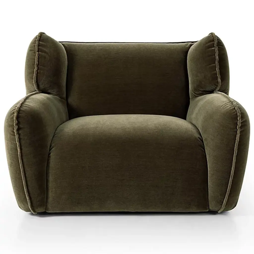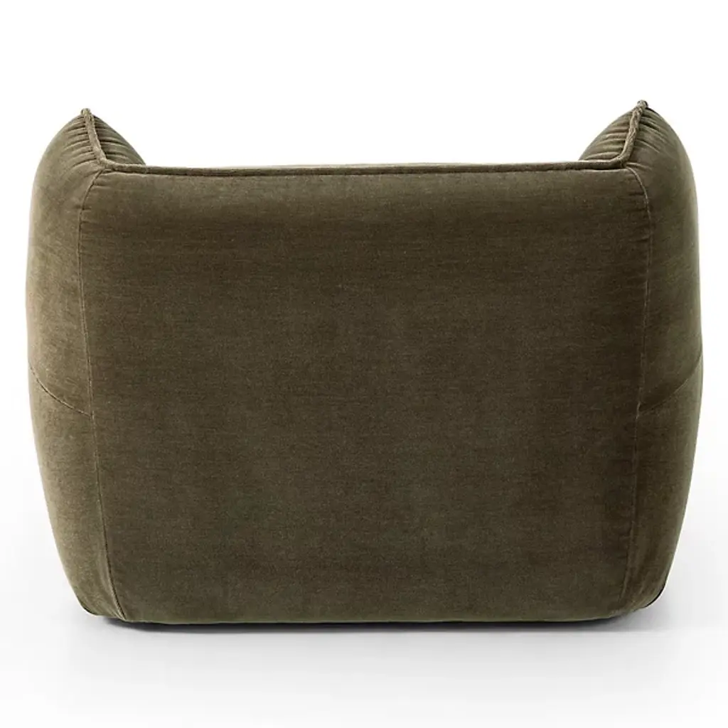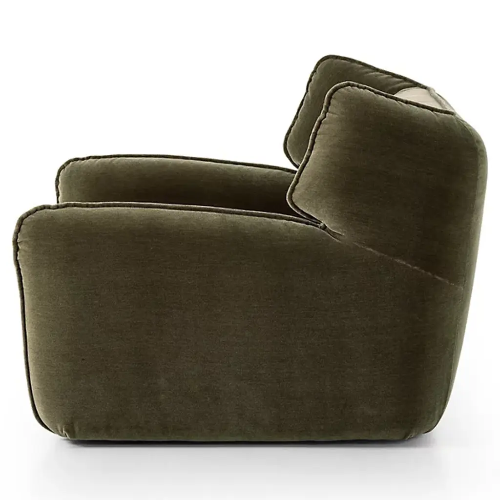 The Garland Swivel Chair from Four Hands reimagines the classic wingback design optimized for modern living comfort. With generously scaled proportions and exaggerated arms wrapped in soft, strong fabric, this inviting chair creates a personal sanctuary for ideal for relaxation. The thoughtfully pitched seat encourages perfect repose, while a smooth 360-degree swivel base allows effortless transitions from quiet contemplation to lively conversation. This contemporary piece is built on a sturdy pine and poplar frame, which brings sophisticated comfort to any living space.
