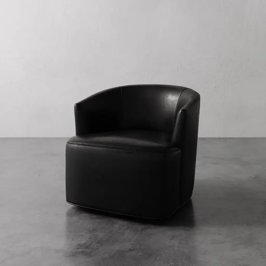 The Garnier Leather Swivel Chair from Lemieux et Cie offers both visual softness and deep-seated comfort, making it an effortless fit for any space. The sculptural, rounded silhouette is at once grounding and weightless, a study in quiet elegance and versatility. With its seamless swivel function and timeless appeal, the Garnier Swivel Chair is an instant classic—designed to move with ease while anchoring a room in sophisticated simplicity.  Available in 7 luxe leathers and COL.