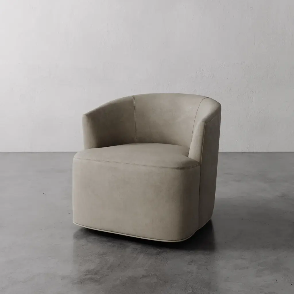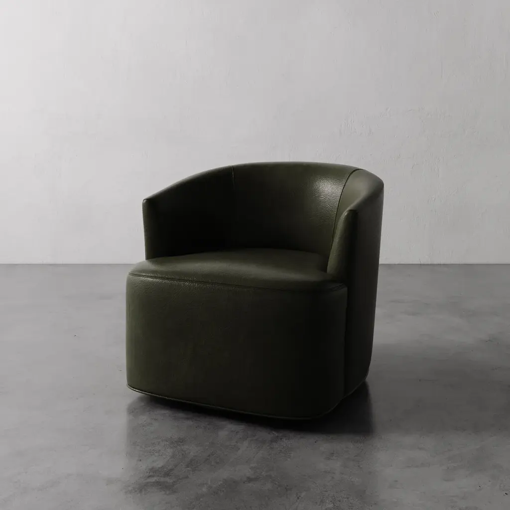 The Garnier Leather Swivel Chair from Lemieux et Cie offers both visual softness and deep-seated comfort, making it an effortless fit for any space. The sculptural, rounded silhouette is at once grounding and weightless, a study in quiet elegance and versatility. With its seamless swivel function and timeless appeal, the Garnier Swivel Chair is an instant classic—designed to move with ease while anchoring a room in sophisticated simplicity. Available in 7 luxe leathers and COL.