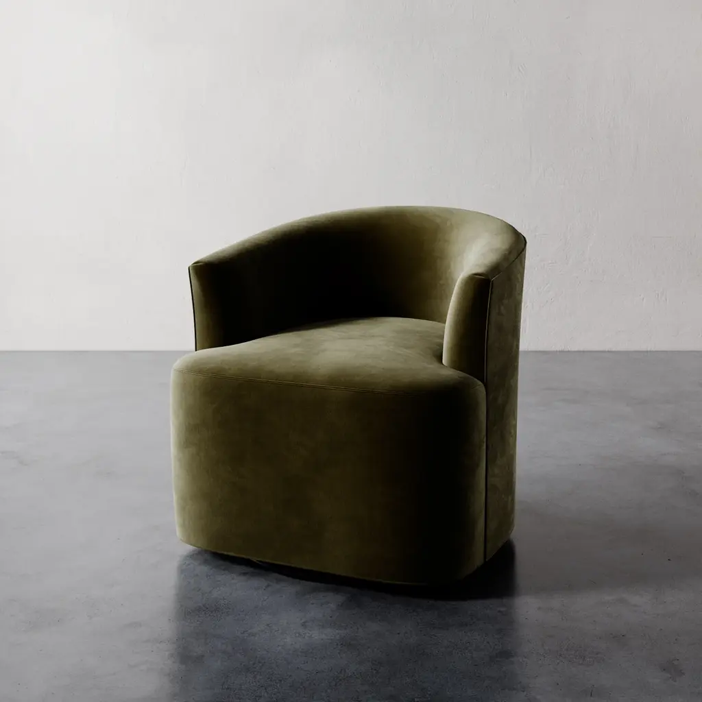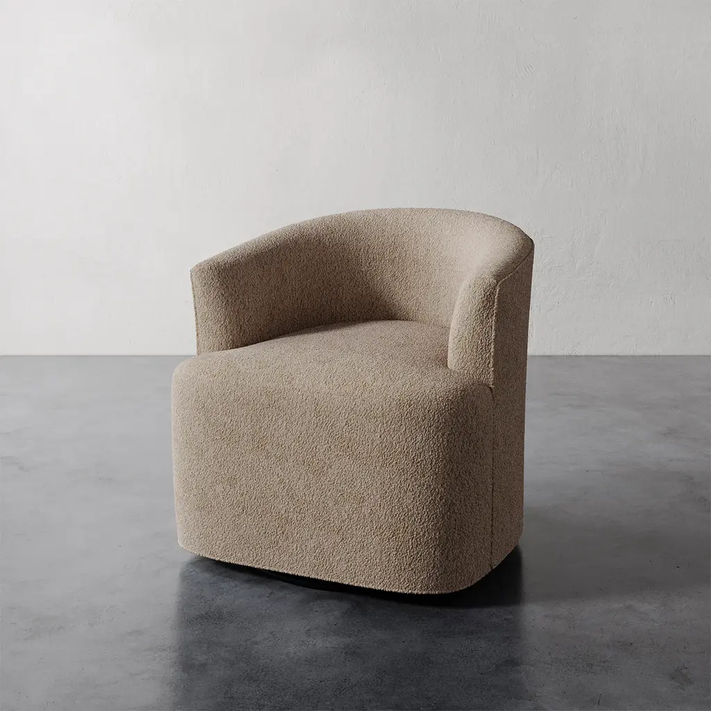 The Garnier Swivel Chair from Lemieux et Cie offers both visual softness and deep-seated comfort, making it an effortless fit for any space. The sculptural, rounded silhouette is at once grounding and weightless, a study in quiet elegance and versatility. With its seamless swivel function and timeless appeal, the Garnier Swivel Chair is an instant classic—designed to move with ease while anchoring a room in sophisticated simplicity.