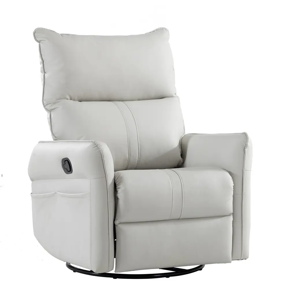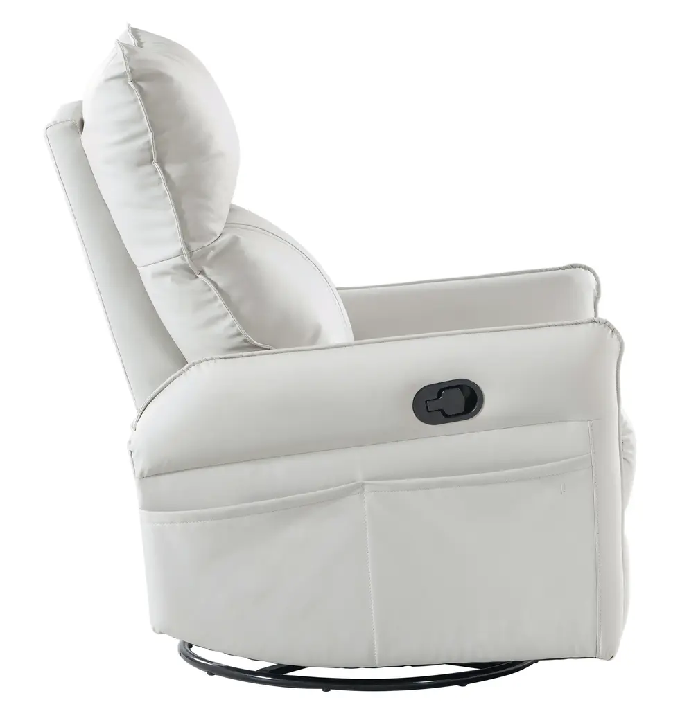 Gdf Studio 360 Swivel Pu Rocking Recliner Chair With Side Pocket, Light Gray
