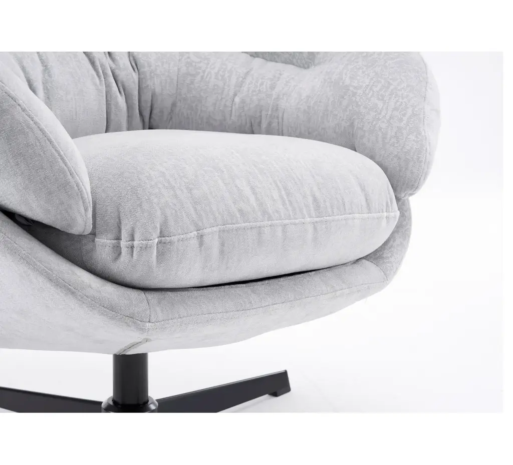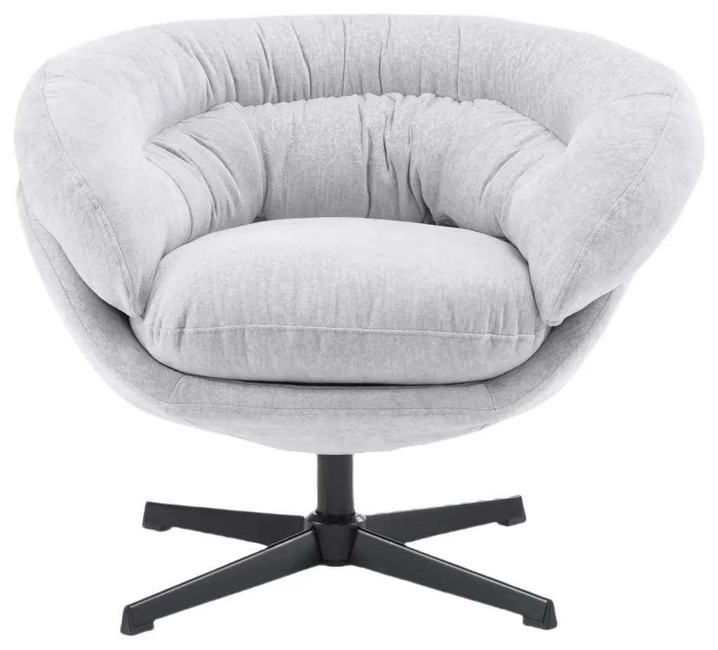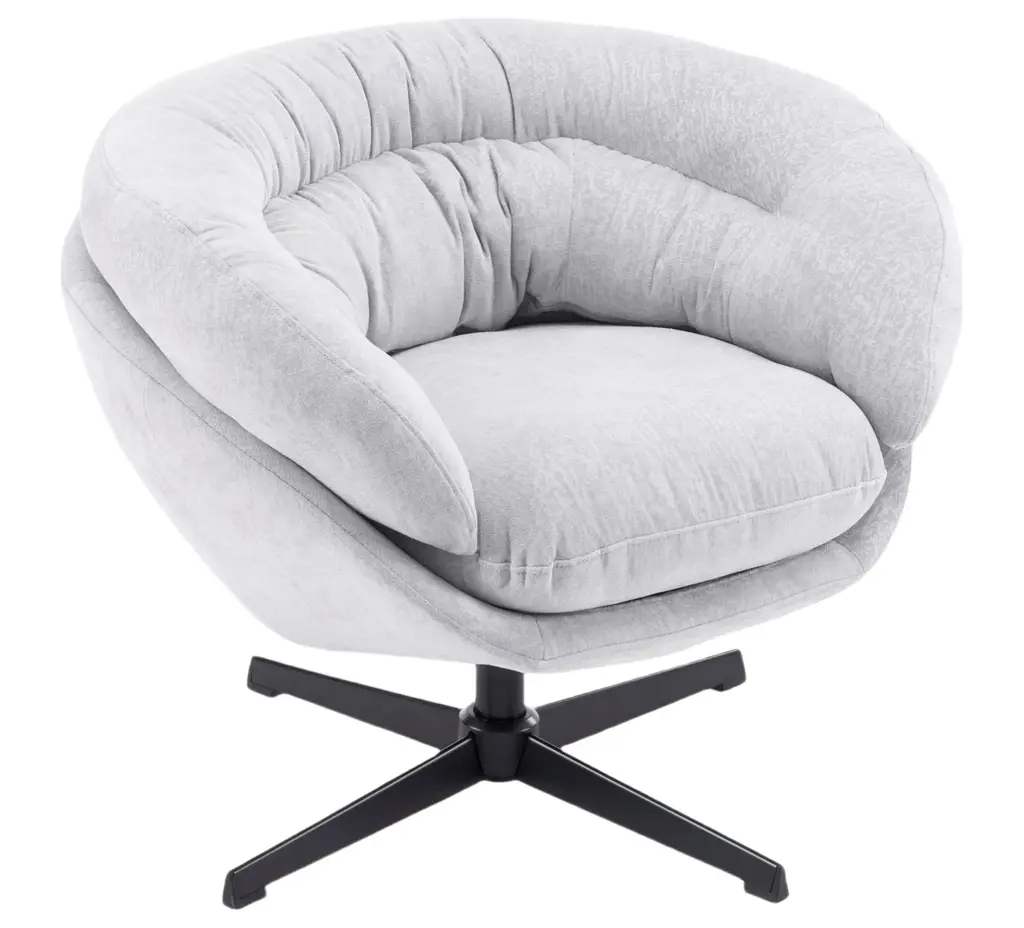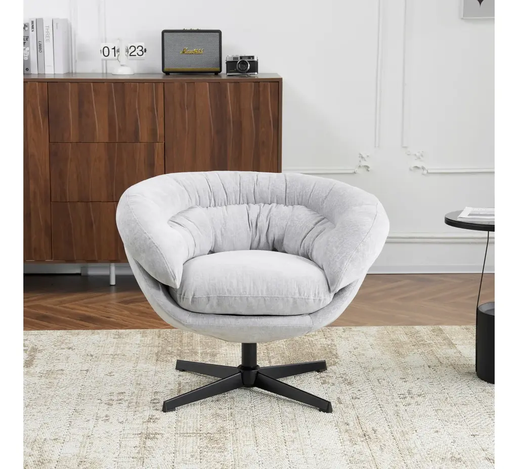 Unmatched Comfort & Ergonomic Design: Experience the ultimate in relaxation with our expertly crafted swivel chair. Its ergonomic contours provide superior support for your back and neck, promoting healthy posture and minimizing fatigue during long hours of sitting—perfect for reading, working, or lounging.Versatile & Chic Design: With its elegant chenille upholstery, this accent chair seamlessly blends with any interior style—from contemporary to classic. Its neutral tones create a warm and inviting atmosphere, making it a perfect fit for your home office, reading nook, or stylish living room.Smooth 360 Swivel for Effortless Mobility: Enjoy the convenience of our chair's effortless 360-degree swivel mechanism. Easily turn and reach for items or engage in discussions without getting up, enhancing your productivity and comfort whether you're at work or relaxing at home.Robust & Stylish Construction: Built for longevity, this chair features a solid black metal base that adds a modern touch to your decor while ensuring stability and durability. It's designed to withstand daily use, making it a reliable choice for your living room, bedroom, or office.Low-Maintenance Luxury: Keeping your chair fresh and inviting is a breeze thanks to its easy-to-clean upholstery. Simply wipe with a damp cloth to remove spills and dust, ensuring that your chair remains a beautiful focal point in your space for years to come.Include: One (1) Swivel Club ChairMaterial: Chenille + MetalColor: Multiple OptionsAssembly RequiredDimensions: 29.75 inches deep x 33.00 inches wide x 27.50 inches high