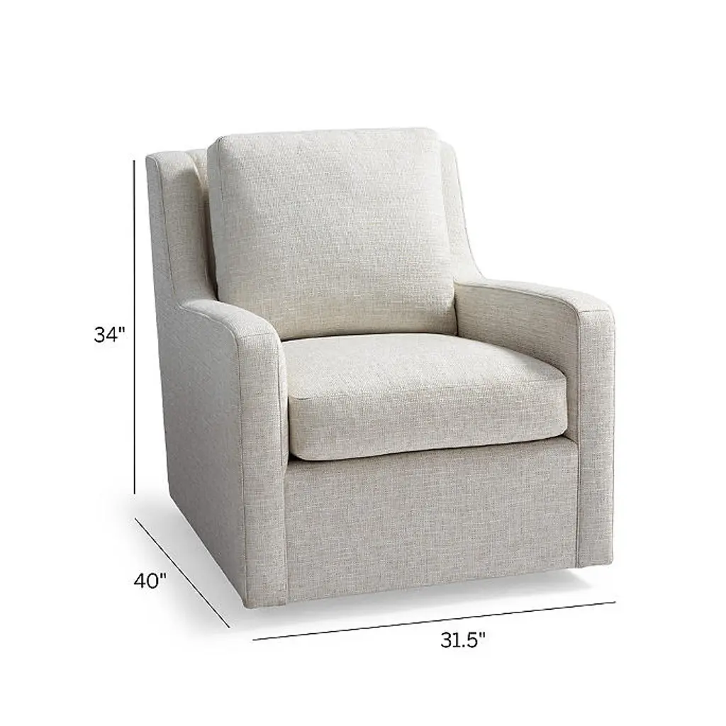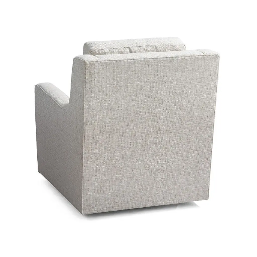 This custom-upholstered, 360-degree swivel chair is handcrafted for style and comfort. The hardwood frame is covered in your choice of rich fabric over with high-density foam fill and has a fiberglass suspension rod for a comfortable sit. The reversible, high-density foam cushion is wrapped in a layer of feathers and down for exceptional softness. Premium Series Upholstery Collection Engineered hardwood frame Flexible fiberglass rod suspension provides durable, long-term and eco-friendly support that resists bending, warping and cracking High-density foam cushion wrapped with feathers and down for maximum comfort Fabric cushion is reversible Upholstered seat, back and sides Velvet naturally ages over time, resulting in light marks or bruising that add to its character and sheen Performance fabric resists stains and repels water and oils, ensuring easy cleaning Leather is a natural material, retaining character marks and subtle shade variations; no two pieces are exactly alike On leather option, velvet decking and cushion underside allow air to flow from the cushion through the decking Performance leather is treated to reduce scratching, fading, staining and color variation Fully upholstered Plastic nonmarring floor glides Levelers For indoor use Wipe clean with a soft, dry cloth Proudly handcrafted in the USA with imported materials, our frames and upholstery are made for life A Frontgate exclusive. At Frontgate, our primary focus is quality. We guarantee that every product we sell will stand up to the supreme test – our customers' satisfaction. To learn more about our policies, visit our Shipping & Processing, Returns & Exchanges and Warranty & Price Guarantee pages. Please note: Digital renderings of custom upholstery may differ in pattern placement from the actual item; colors can vary from screen to screen.