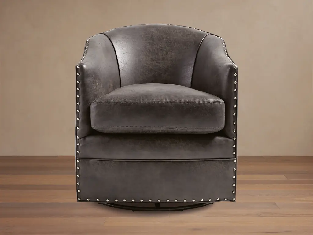 Giles Faux Leather Swivel Chair With Nailheads