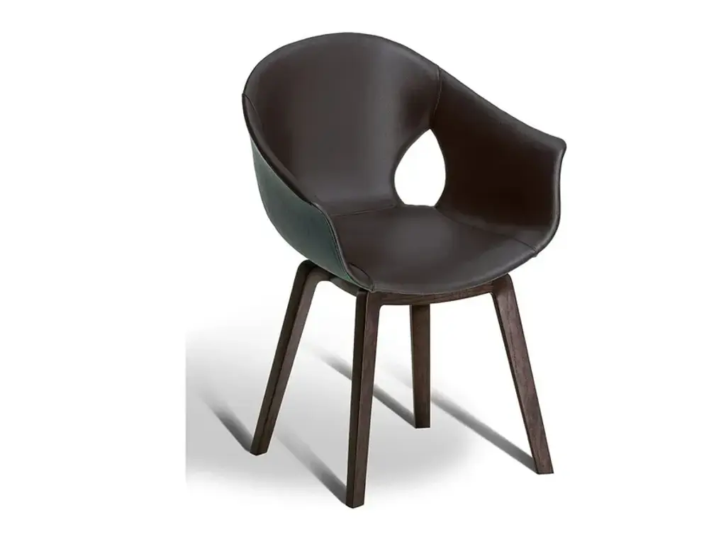 The Ginger accent chair joins Ozwald Boateng's capsule collection. The outer shell is in Pelle Frau® Kenté leather, available in various colors. The interior, on the other hand, is in Pelle Frau® Colorsphere leather. Like the standard catalog version, the accent chair is supported by a four-legged wooden base and is available in either a fixed or swivel version.The Ozwald Boateng x Poltrona Frau collection is born from the fusion of three rich cultural heritages, finding their meeting point in the excellence of handmade craftsmanship and a strong inclination for experimentation. The innovative upholstery for the seats and the new accessories captures the aesthetic elements of African tradition applied to Ozwald Boateng's made-to-measure tailoring, combining them with the mastery of the Made in Italy savoir-faire of Poltrona Frau. This introduces new horizons in leather processing through cutting-edge techniques.