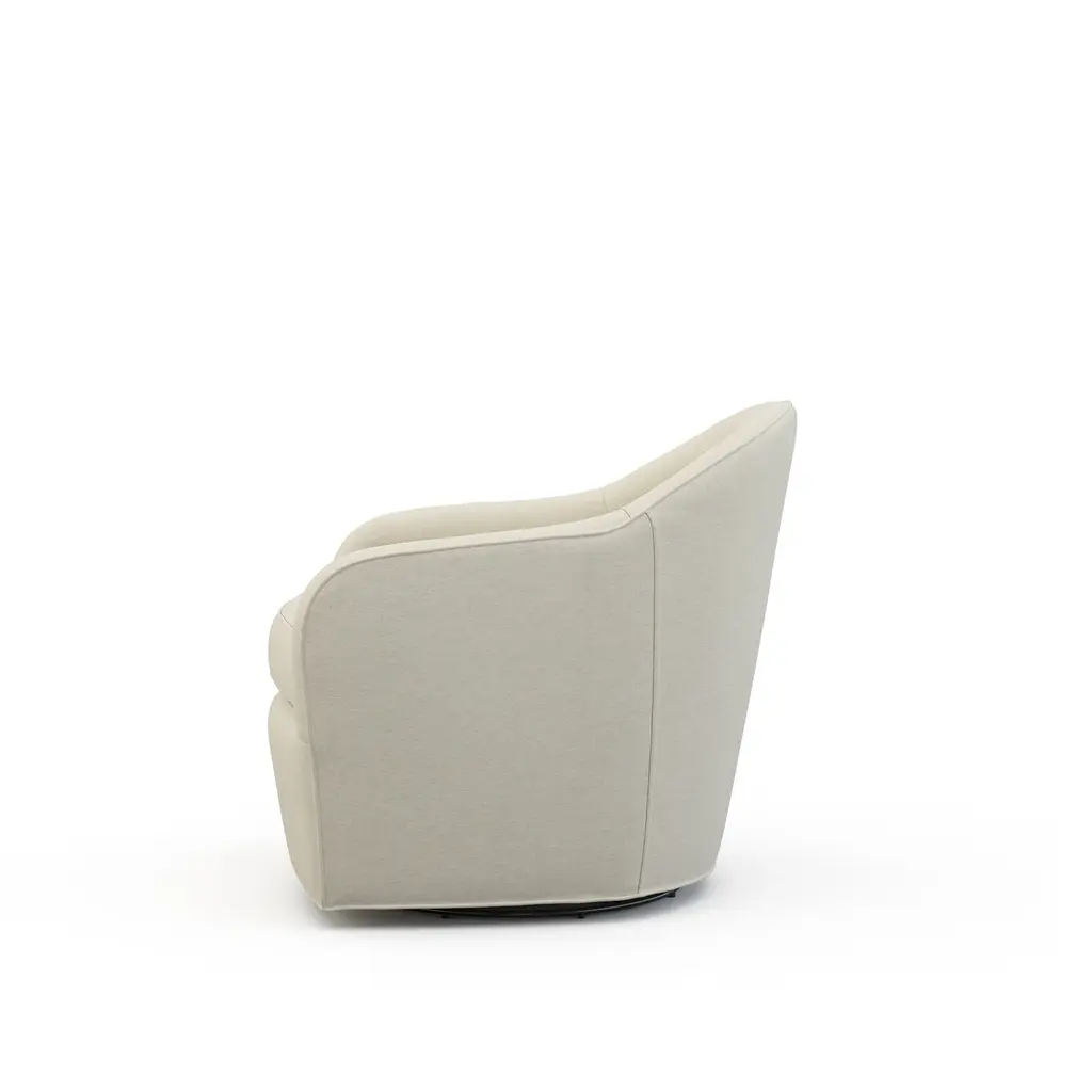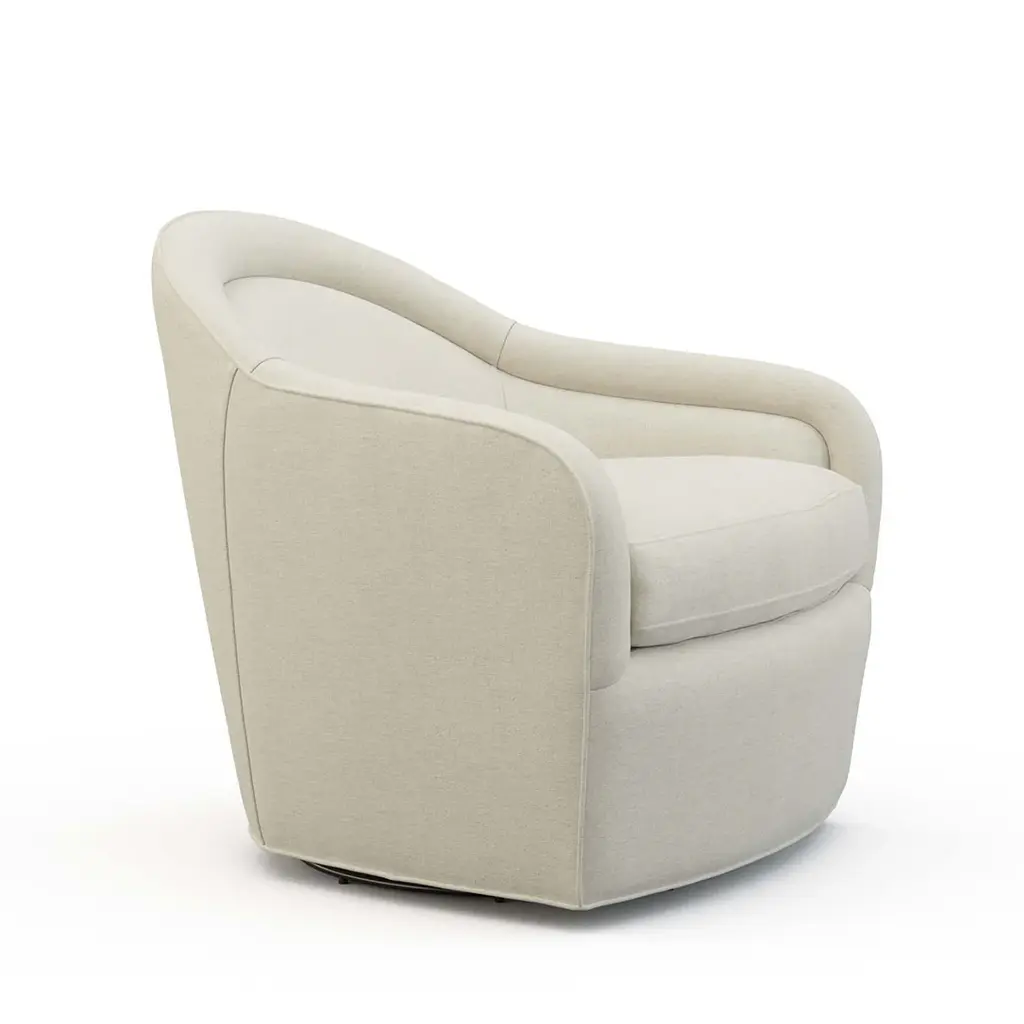 A stunning mix of a substantial base and an open and curvy top, the Gracie Swivel Chair makes a wonderful addition to any conversation-focused space. The blocky base of this chair juxtaposes the back and arms, which are more demure and organic in form, creating a truly unique piece. Ships In 8-10 Weeks Swivel base Tight back One loose seat cushion As Shown Fabric: Dundee Natural If you choose to purchase COM, once you have placed your order a customer service rep will contact you regarding where to send your fabric. Please note that current lead time is 8-10 weeks once your fabric arrives at the factory, and if unused fabric is under 1.5 yards, it cannot be sent back to you.This product can be special ordered in additional fabrics, leathers, and cushion fillings. Click here to email us for for additional information about special ordering.This image is for illustrative purposes only. The colors shown are accurate within the constraints of lighting, photography, and the color accuracy of your screen.