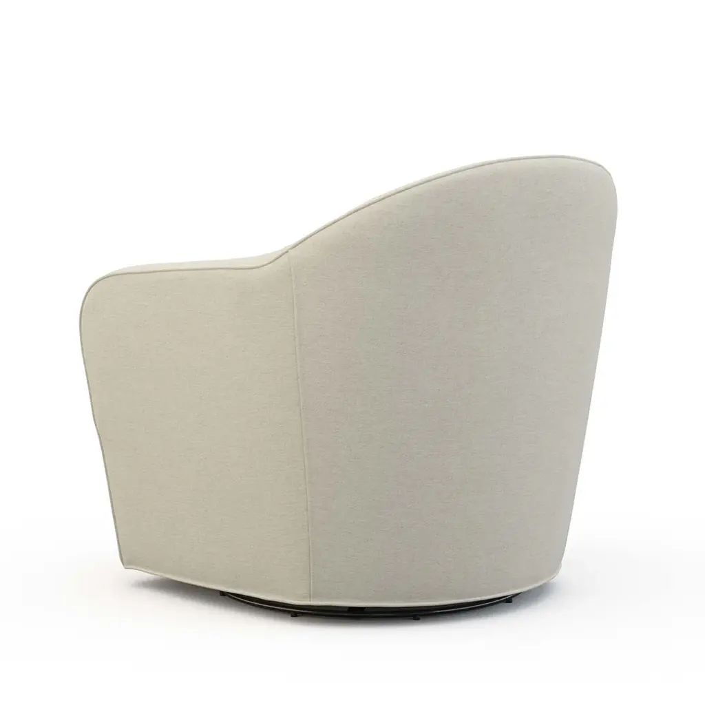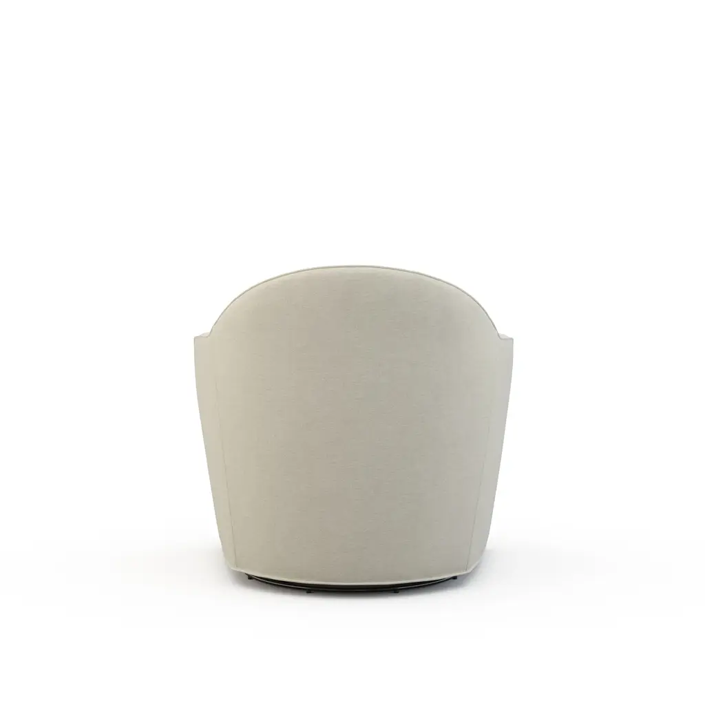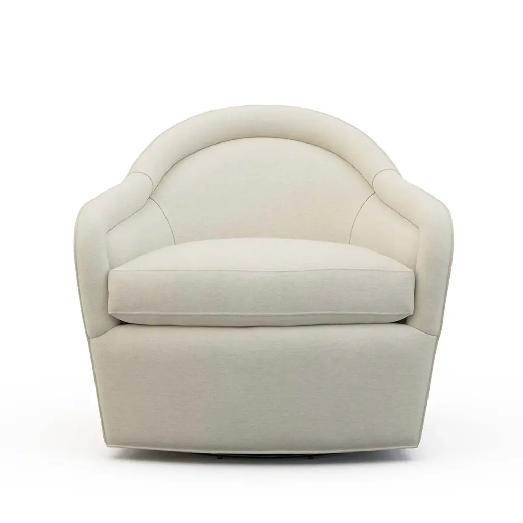 A stunning mix of a substantial base and an open and curvy top, the Gracie Swivel Chair makes a wonderful addition to any conversation-focused space. The blocky base of this chair juxtaposes the back and arms, which are more demure and organic in form, creating a truly unique piece. Ships In 8-10 Weeks Swivel base Tight back One loose seat cushion As Shown Fabric: Dundee Natural If you choose to purchase COM, once you have placed your order a customer service rep will contact you regarding where to send your fabric. Please note that current lead time is 8-10 weeks once your fabric arrives at the factory, and if unused fabric is under 1.5 yards, it cannot be sent back to you.This product can be special ordered in additional fabrics, leathers, and cushion fillings. Click here to email us for for additional information about special ordering.This image is for illustrative purposes only. The colors shown are accurate within the constraints of lighting, photography, and the color accuracy of your screen.