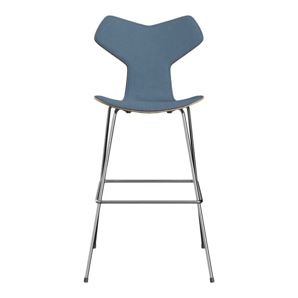 Arne Jacobsen's award-winning Grand Prix chair design is now also available as a counter stool, bar stool, and swivel chair. Celebrated for its distinctive graphic-edge look, the new Grand Prix variations will be available in all standard veneers and all Fritz Hansen colors and upholstery options.