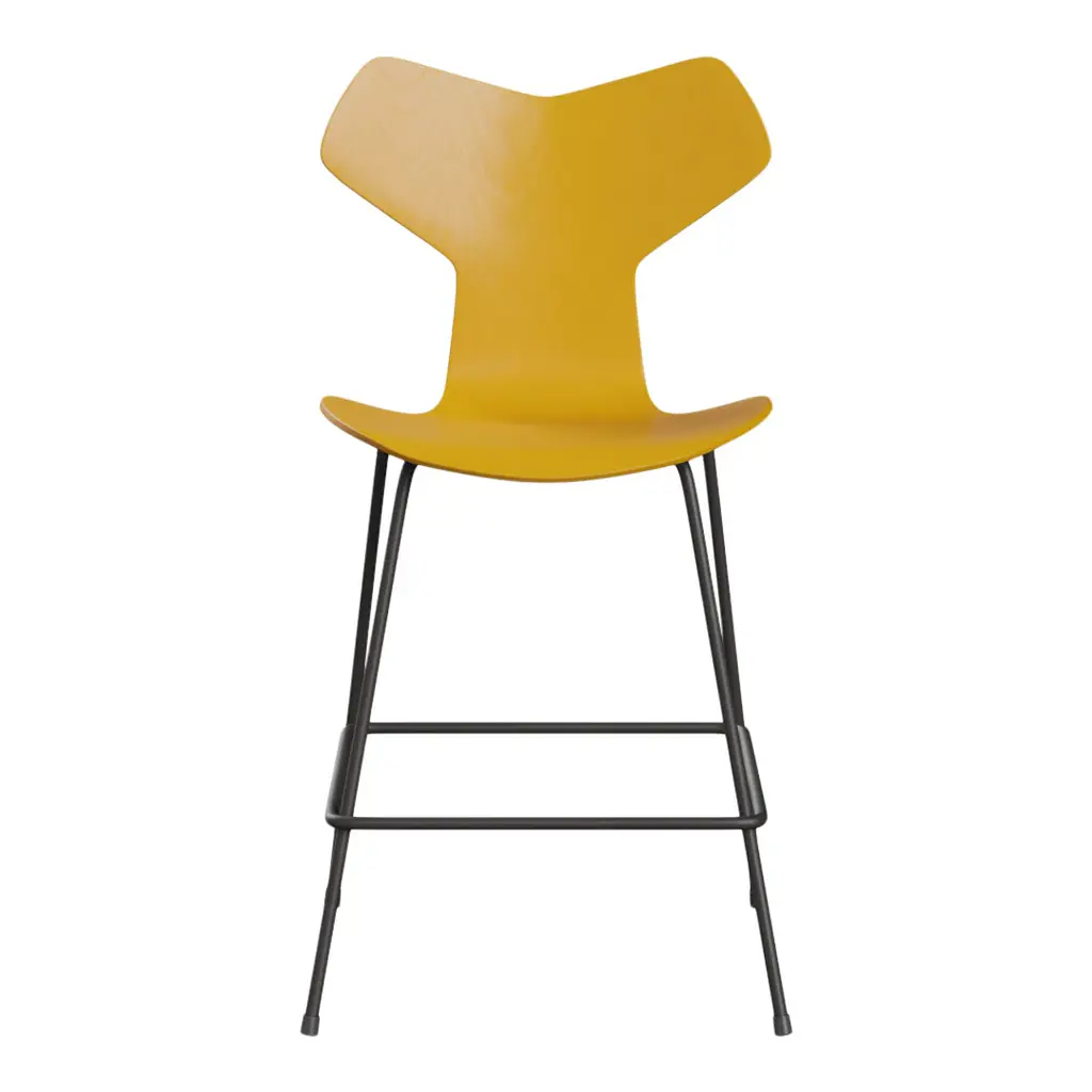 Arne Jacobsen's award-winning Grand Prix chair design is now also available as a counter stool, bar stool, and swivel chair. Celebrated for its distinctive graphic-edge look, the new Grand Prix variations will be available in all standard veneers and all Fritz Hansen colors and upholstery options.
