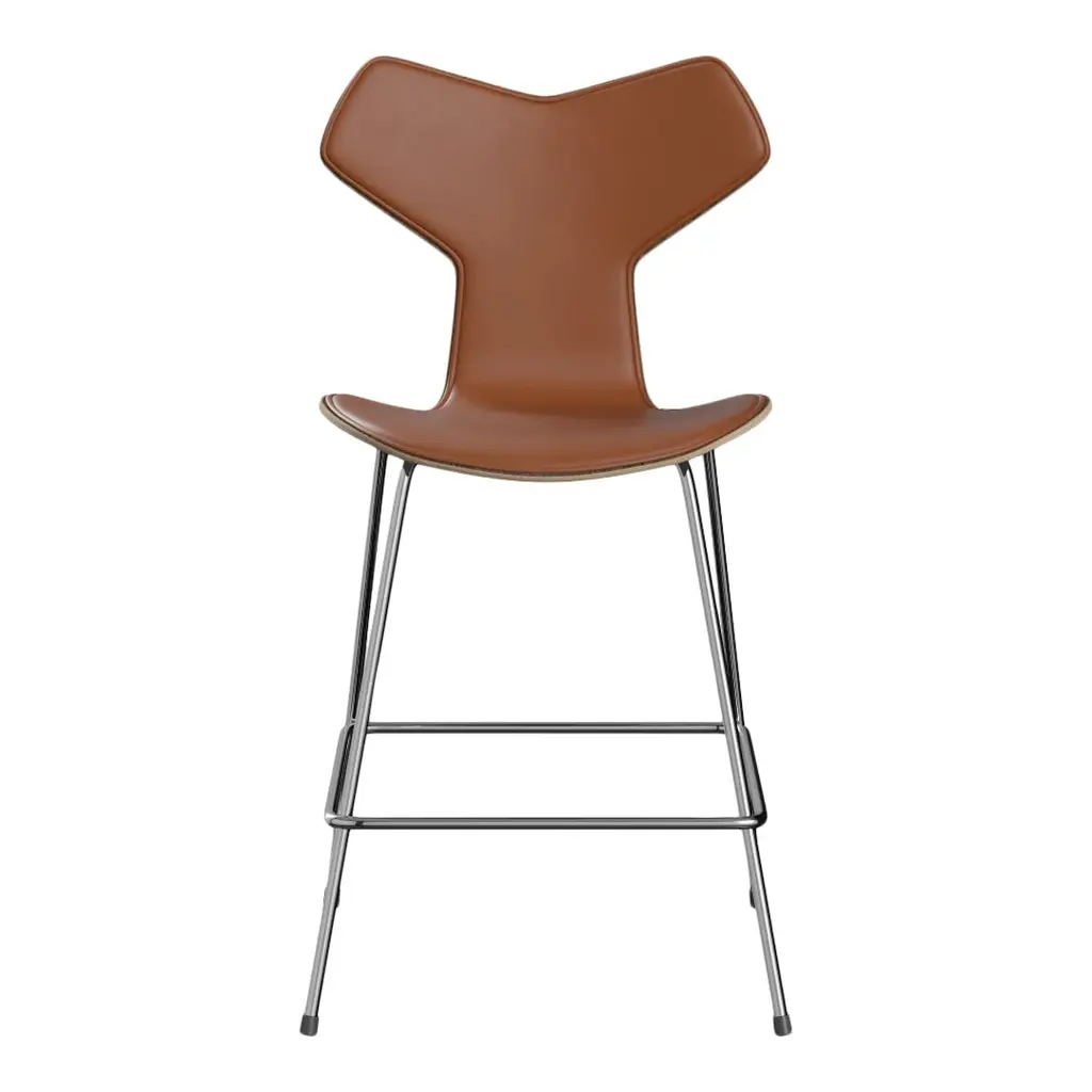 Arne Jacobsen's award-winning Grand Prix chair design is now also available as a counter stool, bar stool, and swivel chair. Celebrated for its distinctive graphic-edge look, the new Grand Prix variations will be available in all standard veneers and all Fritz Hansen colors and upholstery options.