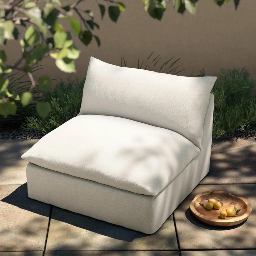 A modern essential for outdoor with a casual look to channel relaxed California lounging. Slipcovers with a knife-edge detail offer a simplified look that prioritizes comfort and practicality with a standalone swivel design. Covered in 100% olefin, known for its UV-resistant, water-repellent and quick-drying abilities.