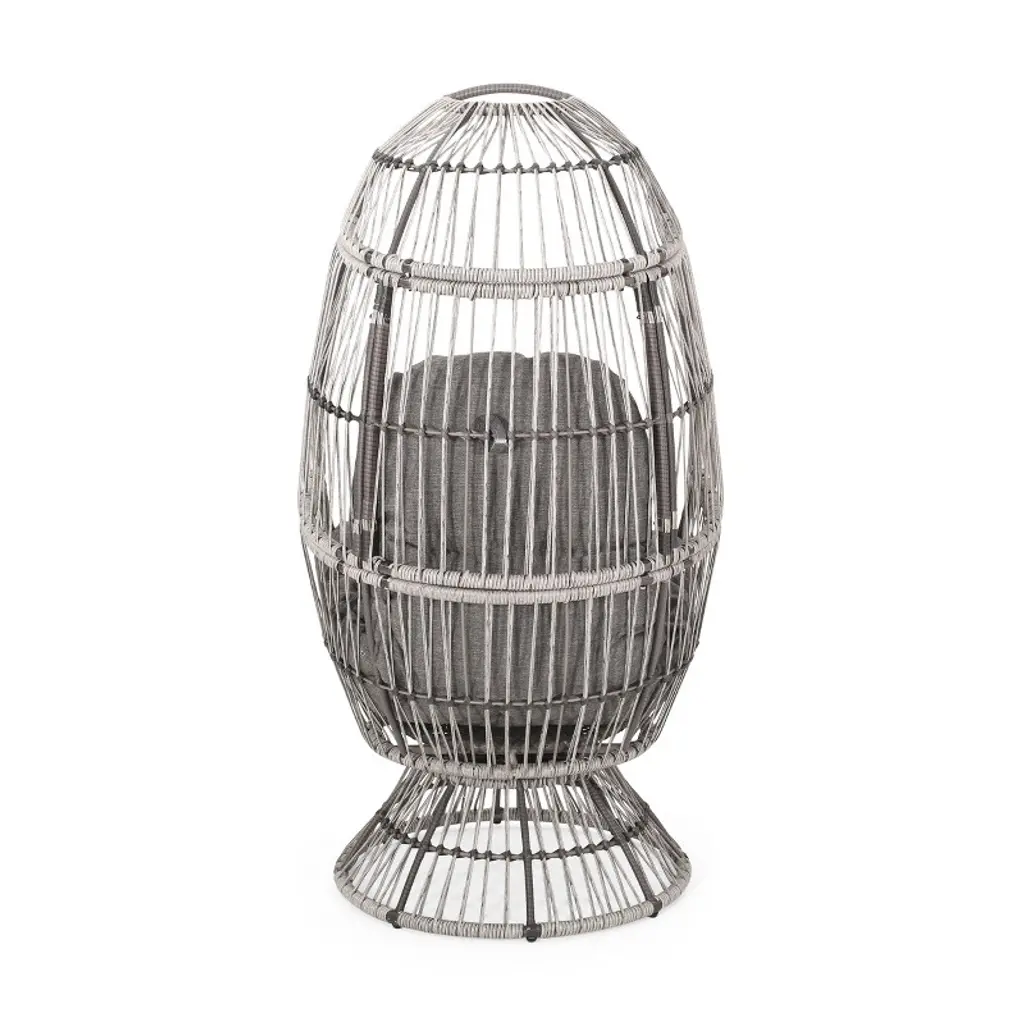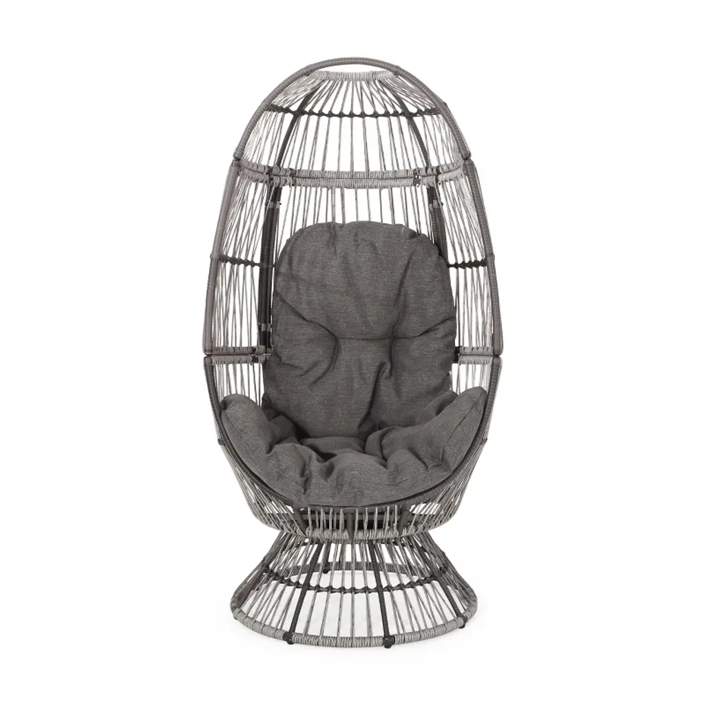 Gulches Outdoor Wicker Swivel Egg Chair With Cushion, Gray