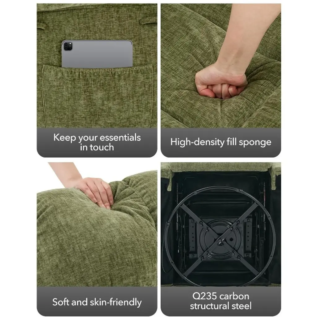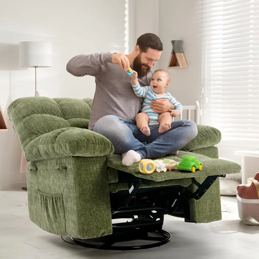 Gustowave Rocking Recliner Chair, 360° Swivel & 30° Rocking, Upholstered Fabric Nursery Chair With Side Pockets,green