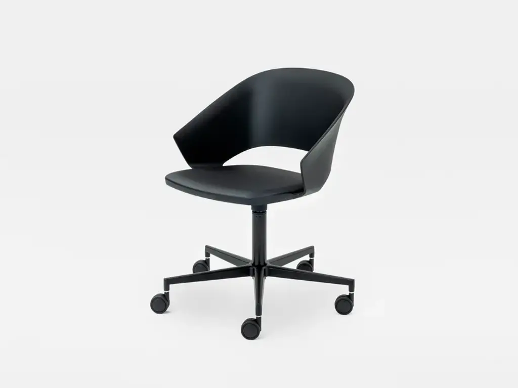 The swivel task chair HAL Ply Studio is part of the HAL family of chairs by Jasper Morrison and comes on a height-adjustable base with castors to ensure pleasant comfort. Its plywood seat shell lends a touch of warmth and elegance to informal work environments, studio offices, workshop zones, libraries or home office settings. Cushions from the Soft Seats range can be added for enhanced well-being and a splash of colour.