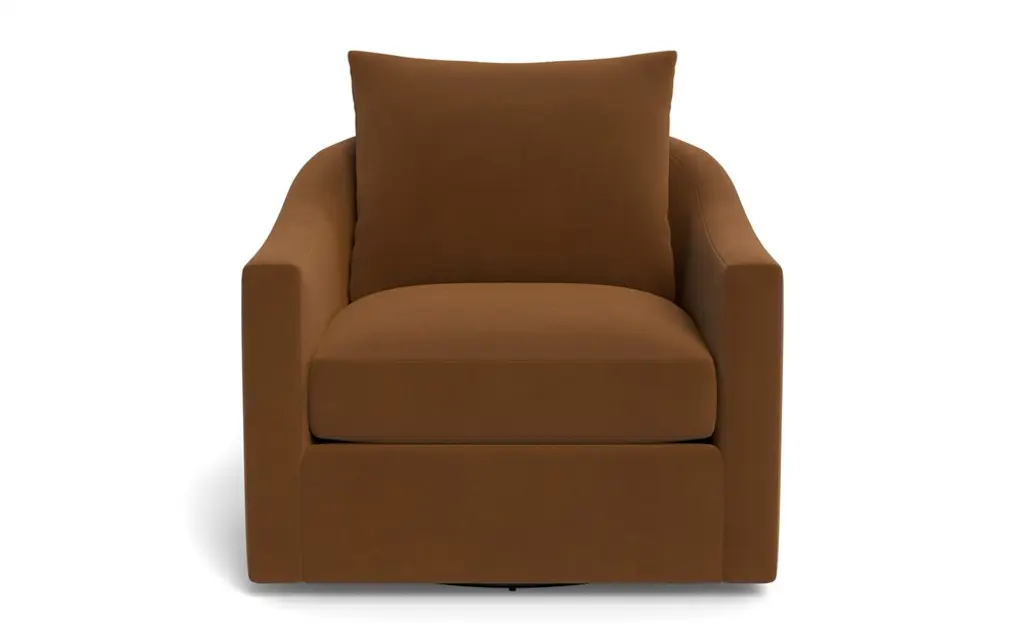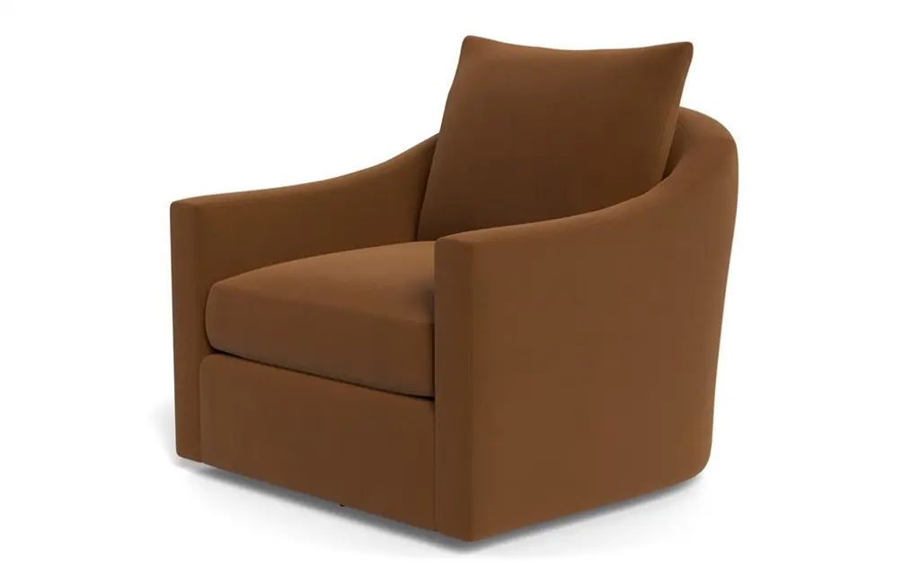 With its streamlined silhouette and gracious curved back, our Halle swivel chair is a perfect mix of modern and traditional. The seat cushion provides a firmer sit that remains both supportive and comfortable. This inviting chair includes a convenient swivel base for ease of movement and effortless functionality.