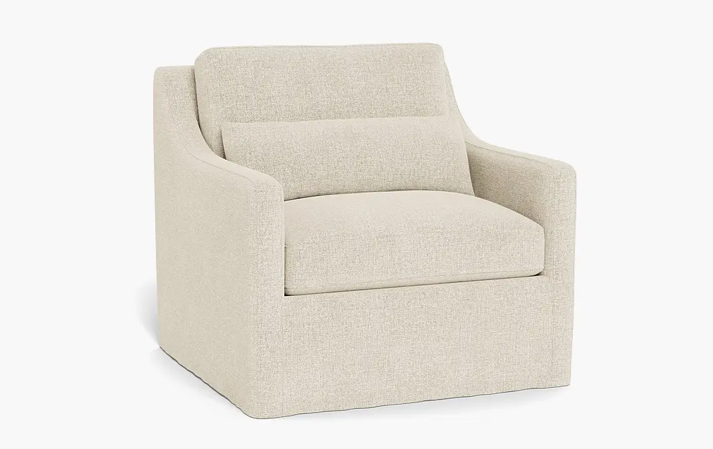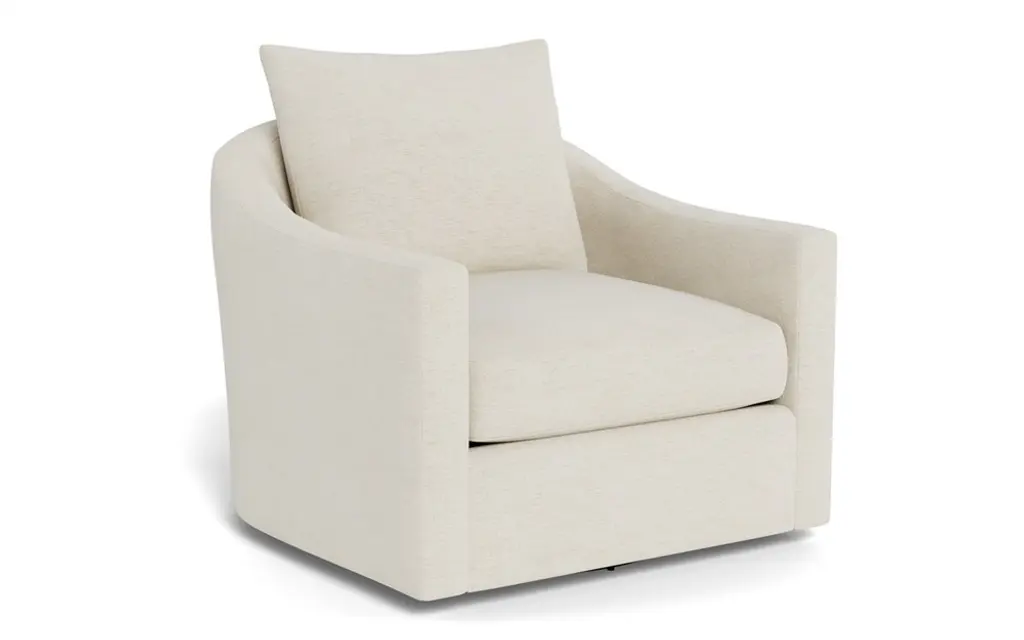 With its streamlined silhouette and gracious curved back, our Halle swivel chair is a perfect mix of modern and traditional. The seat cushion provides a firmer sit that remains both supportive and comfortable. This inviting chair includes a convenient swivel base for ease of movement and effortless functionality.