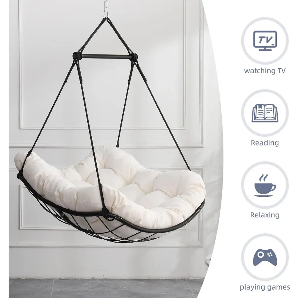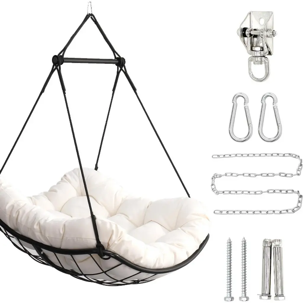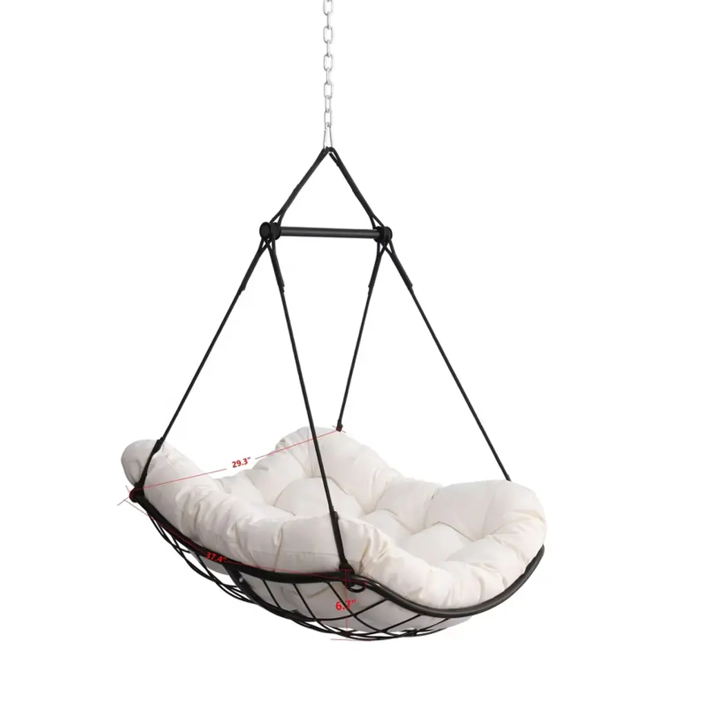Hammock Chair Swing With Cushion - Outdoor Indoor Hanging Hammock Chair For Patio, Porch, Bedroom, Garden, Courtyard, Balcony, Off-white