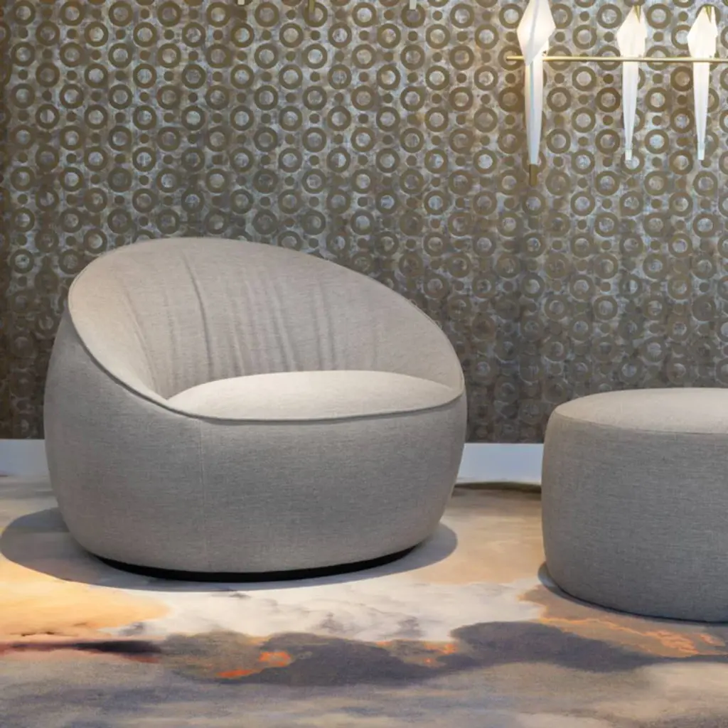 Set on a swivel base, this low-back adaptation of designer Simone Bonanni's comfortably encircling Hana offers an ease of movement that's perfect for unwinding. Inspired by the shape of a blooming flower, the designer fashions a decidedly soft lounge chair for total relaxation and repose. Hana’s signature molded foam curves are carefully upholstered in a range of materials, with gentle folds to play up the characteristics of the individual material.