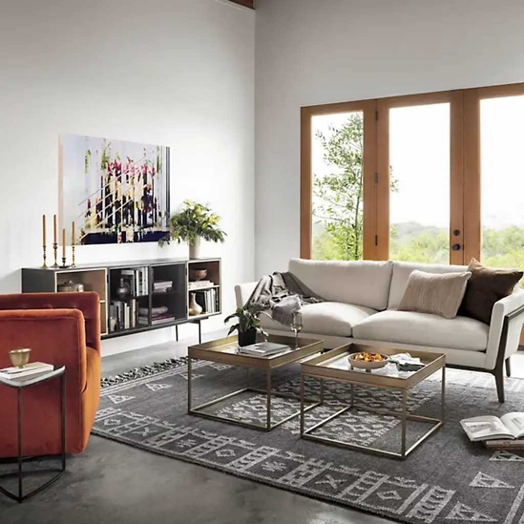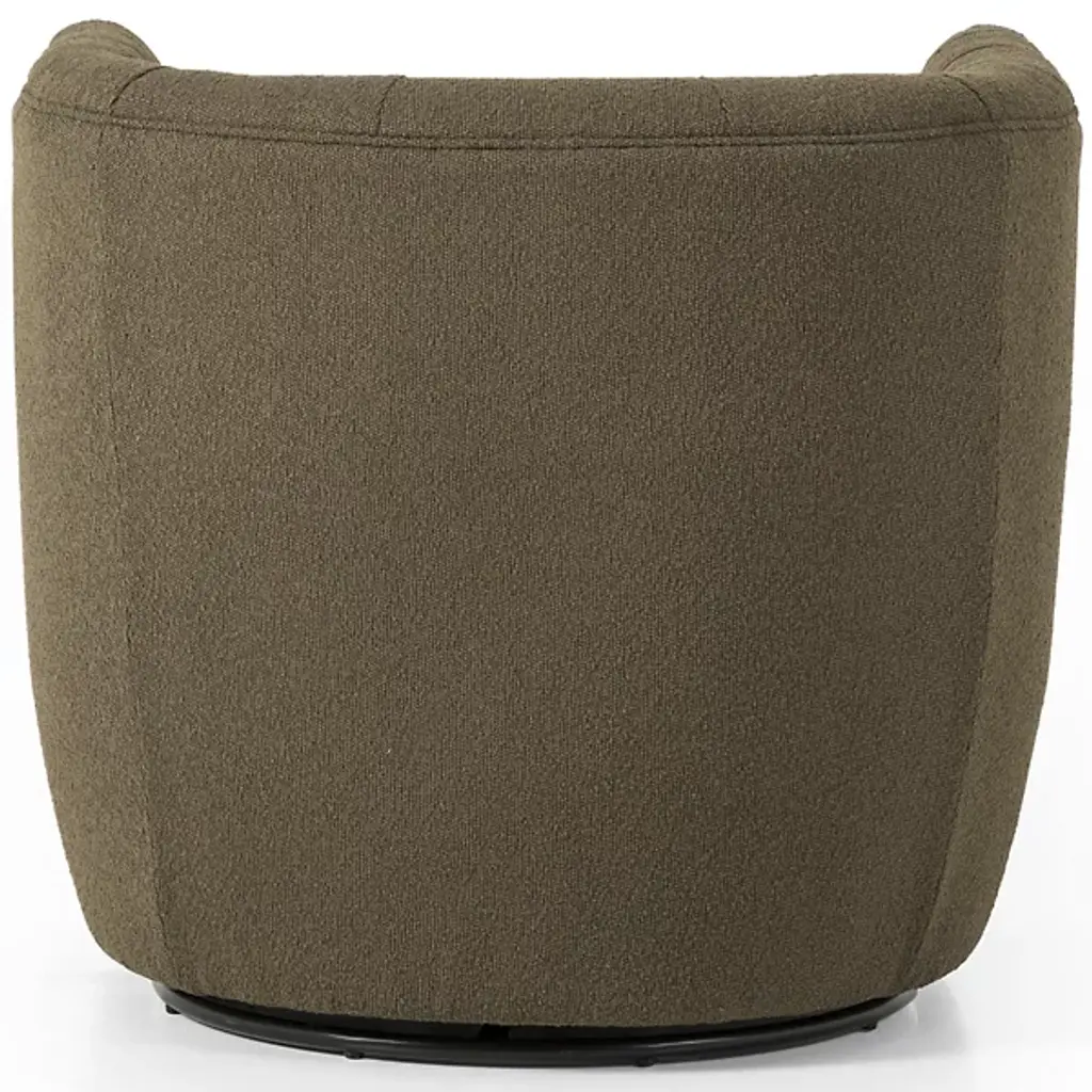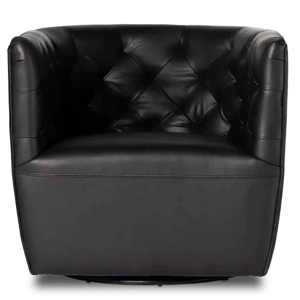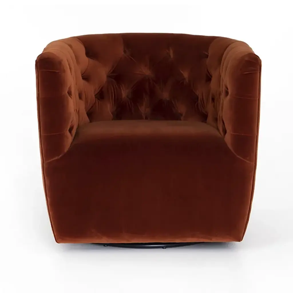 The Hanover Swivel Chair by Four Hands combines comfort and maneuverability. This chair is upholstered with a polyester and cotton blend for your comfort. The eye is drawn to the sophisticated, blind tufting element that lines the chair’s rounded seatback, giving this chair a tailored look. This chair is capable of swiveling for your convenience. Make the Hanover Swivel a decorative mainstay by placing it beside your favorite end table.