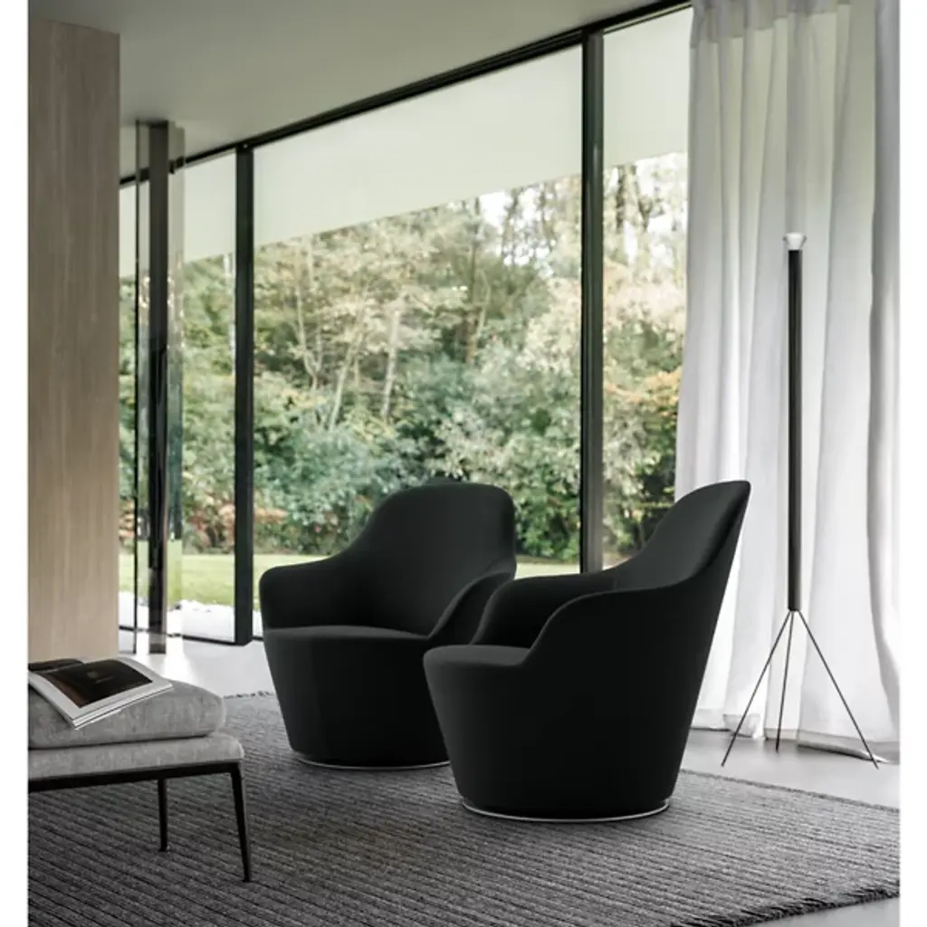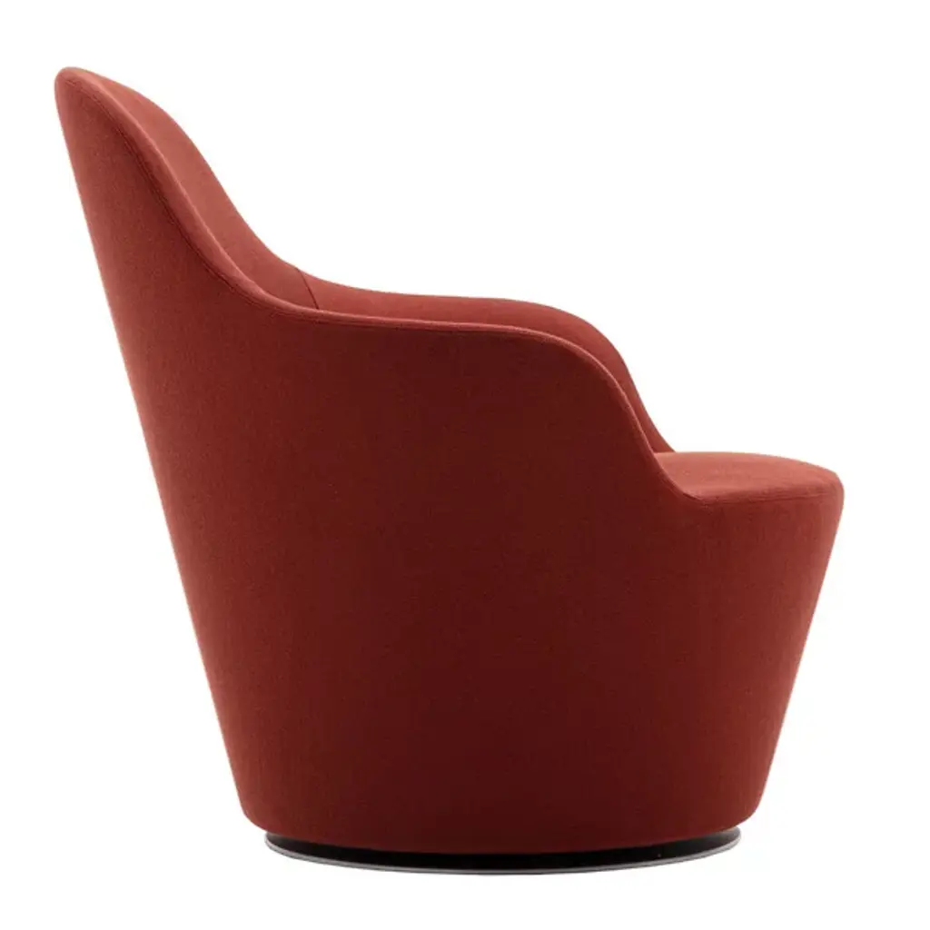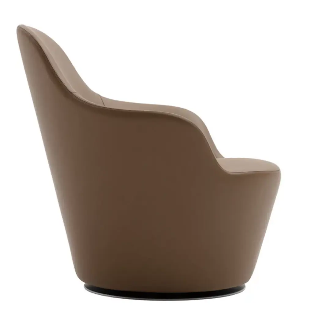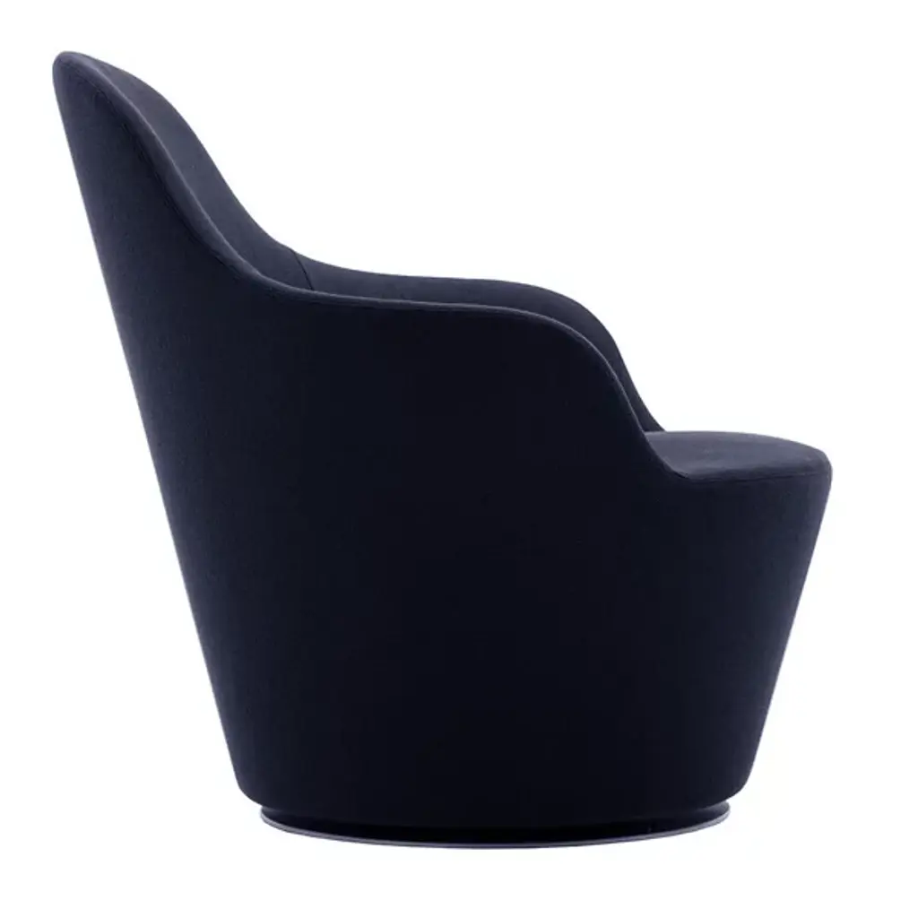 The Harbor Low Armchair from B&B Italia invites conversation or peace alone. Designer Naoto Fukasawa's creative approach aims to achieve enduring functionality through simplicity and beauty. A convenient swiveling base remains barely visible, thanks to the chair's sleek silhouette. The sturdy steel structure is well padded in foam and topped with a soft removable cover.