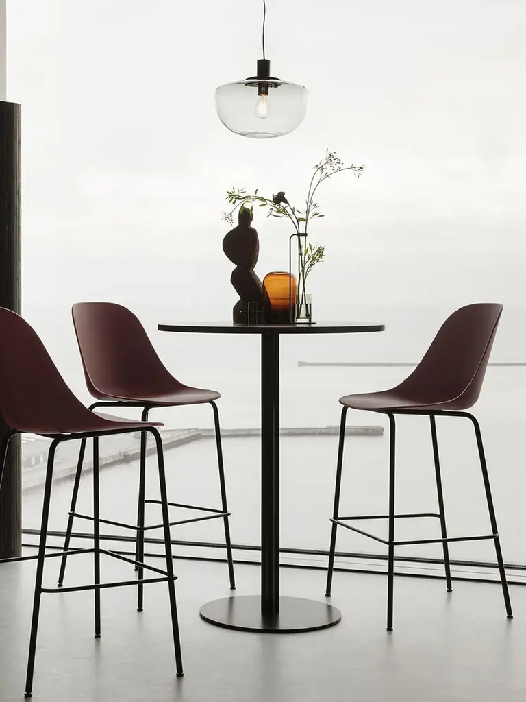 Building on the clean, light and versatile design of the Harbour Chair, Norm Architects are expanding the Harbour family with the elegant Harbour Column Table. We sought to create a column table that would solve the issue of blending in and standing out,” says Norm Architects' Jonas Bjerre-Poulsen. In other words, a design with a strong profile, yet the ability to work in harmony with surroundings of all styles. The Harbour Column Table features a simple tabletop paired with a subtle yet sophisticated clover-shaped column profile: the same one you’ll see in the new swivel version of the Harbour Chair. The pairing gives the modern design a classic, exclusive feel. While the table was originally designed for the Harbour Chair, it also works beautifully with other seating types and styles. At the heart of the Harbour family, after all, is a desire to meet our constantly evolving needs with adaptability and grace. At Audo Space, Audo’s testing ground for new products and a creative hub that’s part office, part café, and part co-working space, the Harbour Column Table has demonstrated an exceptional ability to meet every functional demand, while also pleasing the senses with its balanced, slim silhouette and tactility. The table is available with both round and rectangular tabletops, and in three heights, so finding the right one for your space is easy. You just might wonder how you managed without it. The Harbour Column Table is available with four tabletop sizes: three round, one rectangular. Each can be crafted in charcoal linoleum, black oak veneer, or off white marble to suit your space and design preferences. The column base is constructed in steel and aluminum in a black powder-coated finish, with dining, counter and bar heights to fit numerous needs in homes, workplaces, cafés, lobbies, the possibilities are endless. Mix and match bases and tabletops to create your ideal pairing.