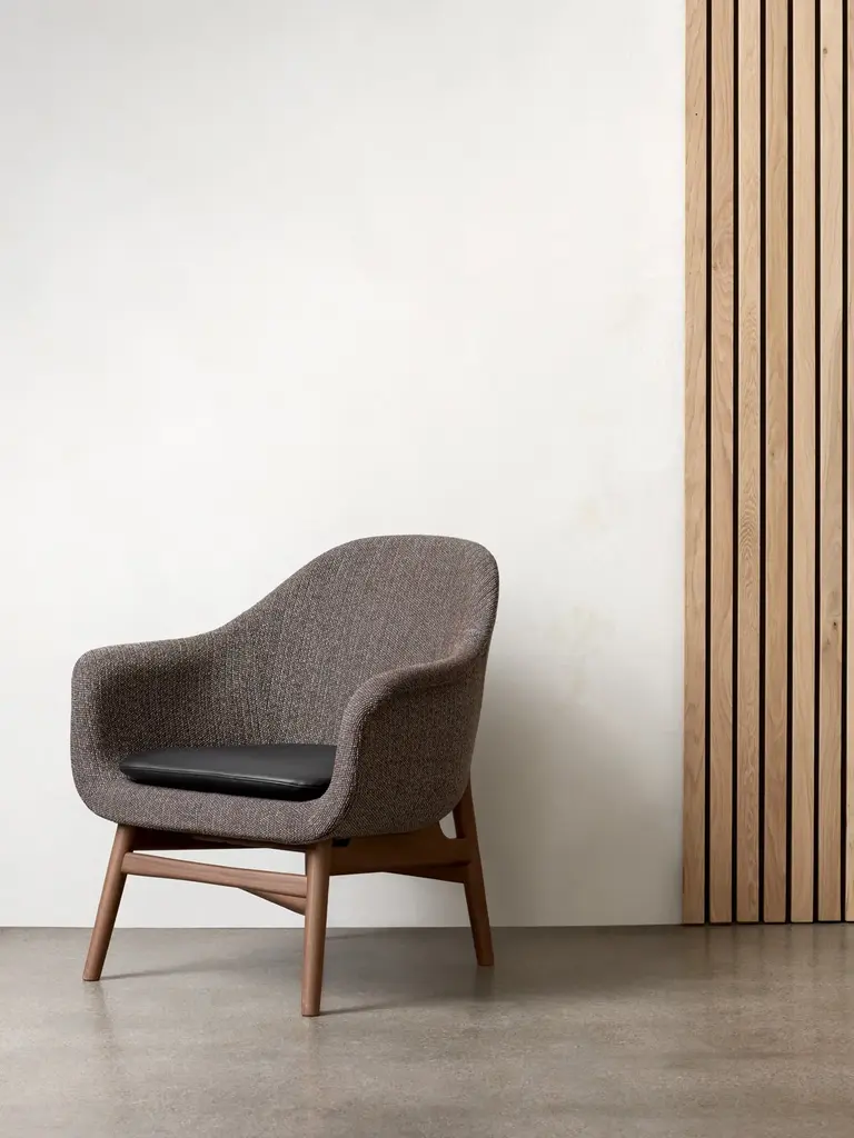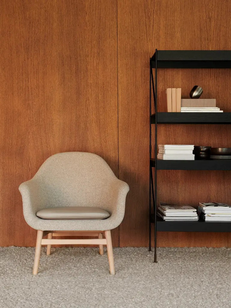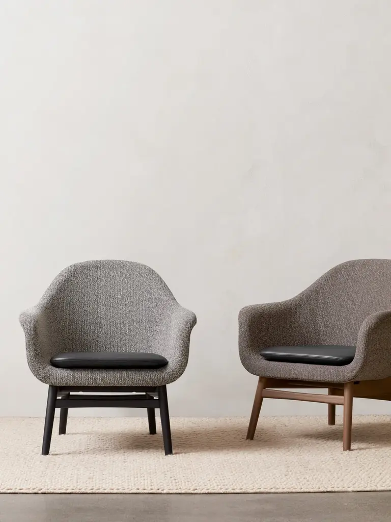 Already available in multiple iterations, from a comfortable dining chair to asophisticated swivel-base chair, the Harbour collection gains a new member: theHarbour lounge chair. A sculptural piece with a minimalist expression, the solid yet lightweight construction retains all the hallmarks of its predecessors, while adding laid-back comfort to the collection. Set on a solid wood frame, the upholstered shell with gently curved sides and an angled backrest retains the sense of being cradled and supported, while inviting complete relaxation.The new Harbour Lounge Chair has the minimalist expression as its predecessors. Resting on a solid wood frame, offered in natural, dark stained or black oak and walnut, its embracing shell is available upholstered in a range of tactile yet durable fabrics in contemporary colorways. The low-pitched frame features rounded legs and subtle joinery details, and the generous shell has a wide back, angled for comfort and supporting the body while providing space to relax. Ideal for relaxing into after a long day, it features the collection’s characteristic curving armrests and a luxuriously over sized seat complete with a corresponding cushion.