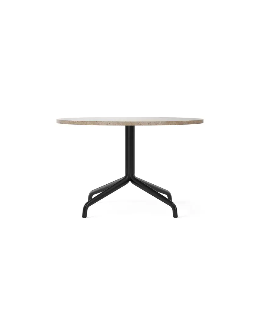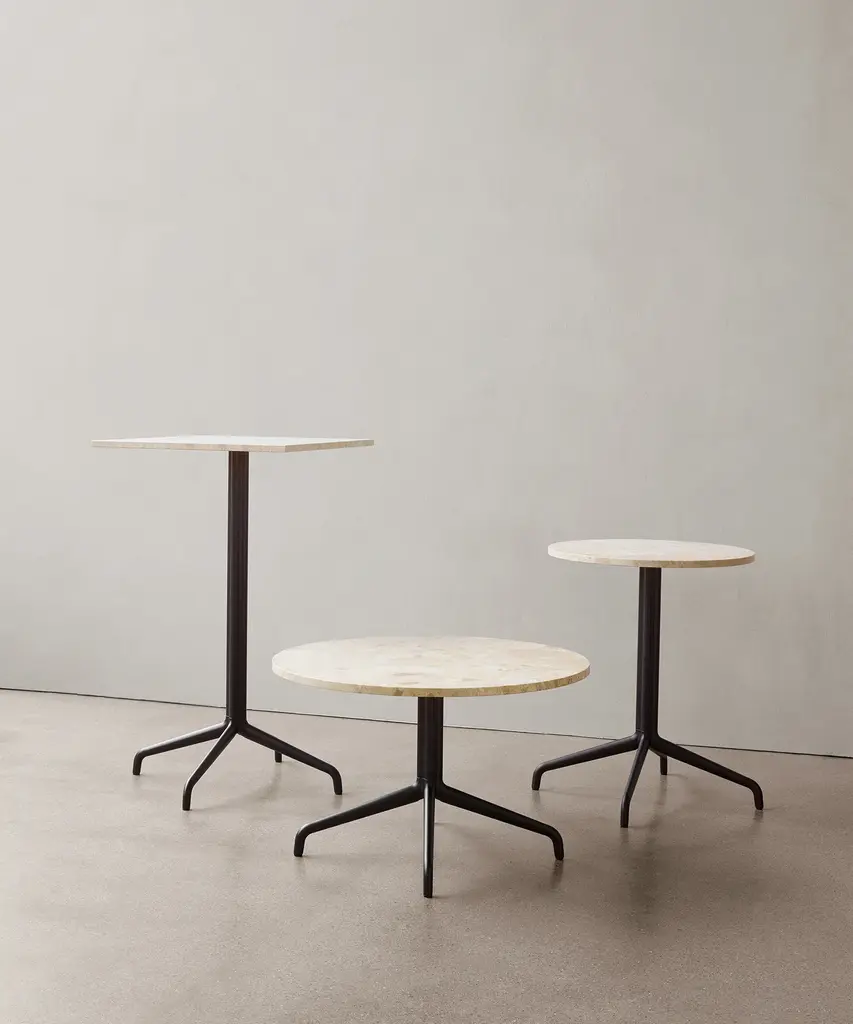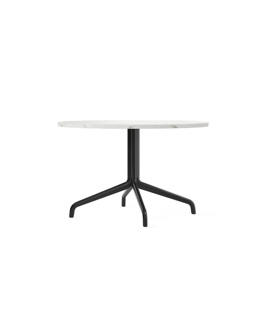 Star-shaped, black powder-coated aluminum and steel base with round Kunis Breccia, Estremoz marble, black-painted oak or linoleum tabletop. Building on the clean, light and versatile design of the Harbour Chair, Norm Architects is expanding the Harbour family with the elegant Harbour Column Table. We sought to create a column table that would solve the issue of blending in and standing out,” says Norm Architects' Jonas Bjerre-Poulsen. In other words, a design with a strong profile, yet the ability to work in harmony with surroundings of all styles. The Harbour Column Table features a simple tabletop paired with a subtle yet sophisticated clover-shaped column profile: the same one you’ll see in the new swivel version of the Harbour Chair. The pairing gives the modern design a classic, exclusive feel. While the table was originally designed for the Harbour Chair, it also works beautifully with other seating types and styles. At the heart of the Harbour family, after all, is a desire to meet our constantly evolving needs with adaptability and grace. At Audo Space, Audo’s testing ground for new products and a creative hub that’s part office, part café, and part co-working space, the Harbour Column Table has demonstrated an exceptional ability to meet every functional demand, while also pleasing the senses with its balanced, slim silhouette and tactility. The table is available with both round and rectangular tabletops, and in three heights, so finding the right one for your space is easy. You just might wonder how you managed without it. Designed by Norm Architects for Audo Copenhagen North America.