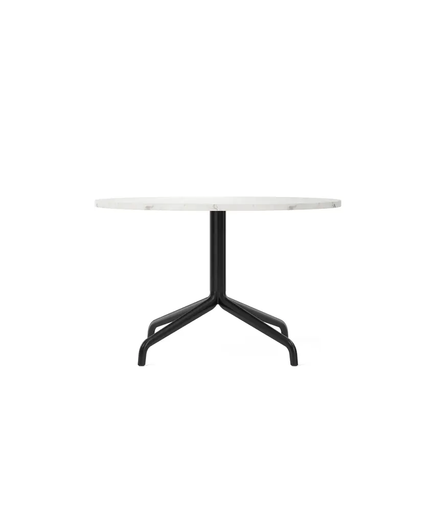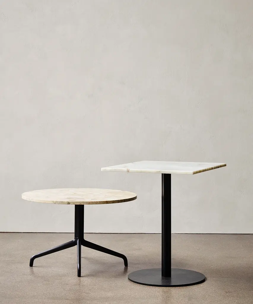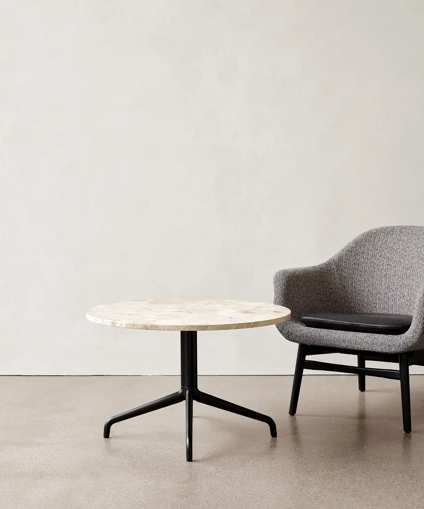 Star-shaped, black powder-coated aluminum and steel base with round Kunis Breccia, Estremoz marble, black-painted oak or linoleum tabletop. Building on the clean, light and versatile design of the Harbour Chair, Norm Architects is expanding the Harbour family with the elegant Harbour Column Table. We sought to create a column table that would solve the issue of blending in and standing out,” says Norm Architects' Jonas Bjerre-Poulsen. In other words, a design with a strong profile, yet the ability to work in harmony with surroundings of all styles. The Harbour Column Table features a simple tabletop paired with a subtle yet sophisticated clover-shaped column profile: the same one you’ll see in the new swivel version of the Harbour Chair. The pairing gives the modern design a classic, exclusive feel. While the table was originally designed for the Harbour Chair, it also works beautifully with other seating types and styles. At the heart of the Harbour family, after all, is a desire to meet our constantly evolving needs with adaptability and grace. At Audo Space, Audo’s testing ground for new products and a creative hub that’s part office, part café, and part co-working space, the Harbour Column Table has demonstrated an exceptional ability to meet every functional demand, while also pleasing the senses with its balanced, slim silhouette and tactility. The table is available with both round and rectangular tabletops, and in three heights, so finding the right one for your space is easy. You just might wonder how you managed without it. Designed by Norm Architects for Audo Copenhagen North America.