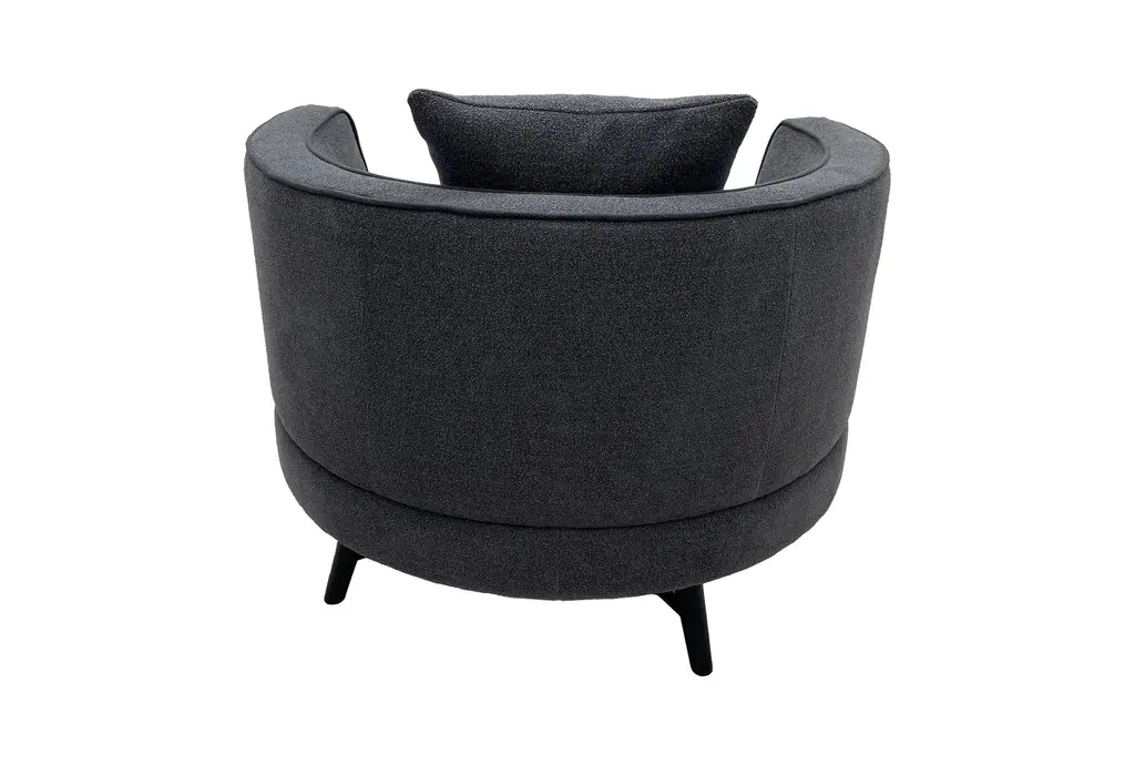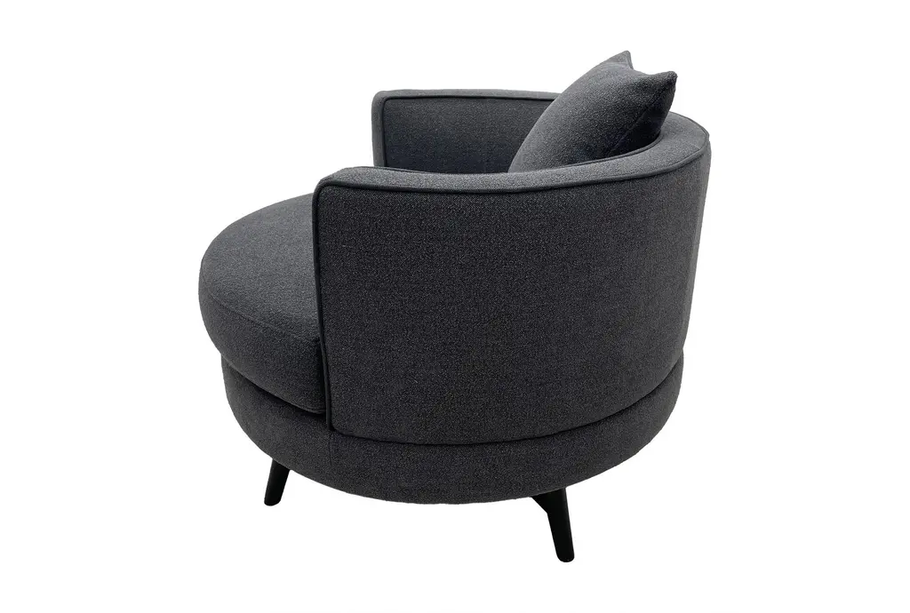 The Harper Dark Grey Swivel Barrel Chair offers a modern touch to any living room. With its curved design and comfortable armrests, this chair is perfect for relaxation. The swivel feature adds functionality and ease of movement.