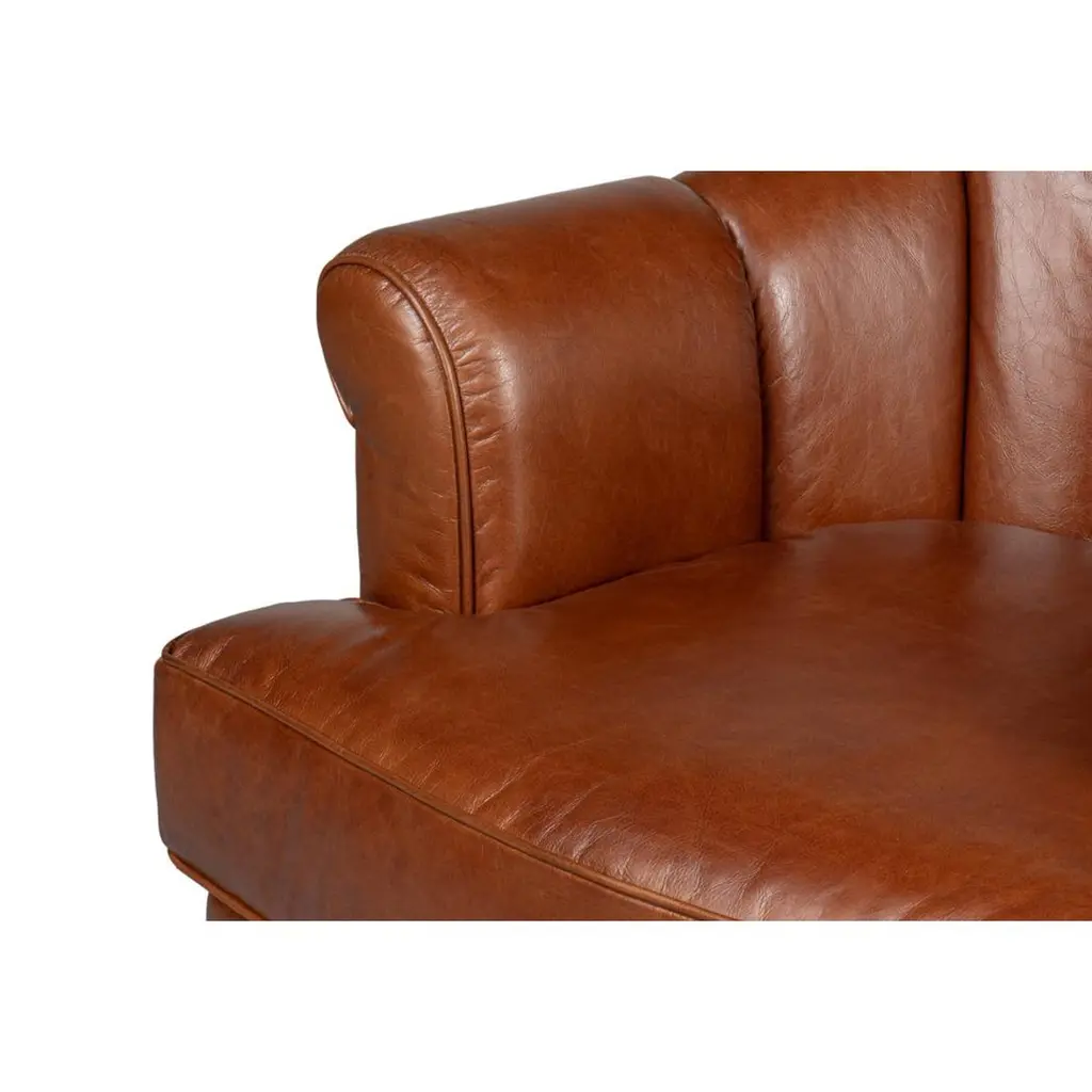 A haven of relaxation where classic design meets cloud-like comfort. With its generously padded, rolled armrests and deep, inviting seat cushion, this chair is a call to leisure, crafted in premium full-grain leather that exudes warmth and character.Whether it's the centerpiece of your living room or a luxurious addition to your study, this club chair will wrap you in comfort and style, becoming a cherished part of your home's narrative.Dimensions: 35" W x 39" D x 35" HSeat - 25" W x 20" D x 16" HArm - 24"