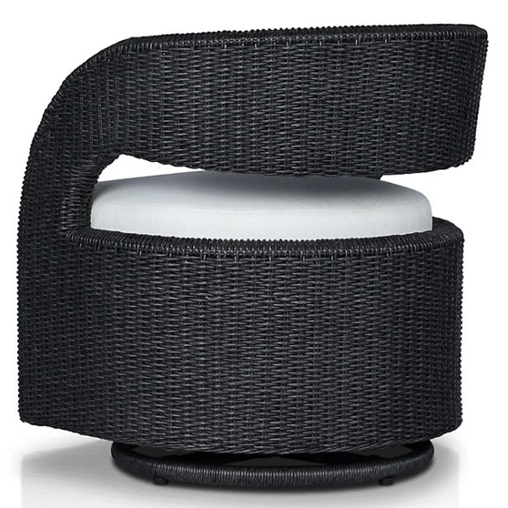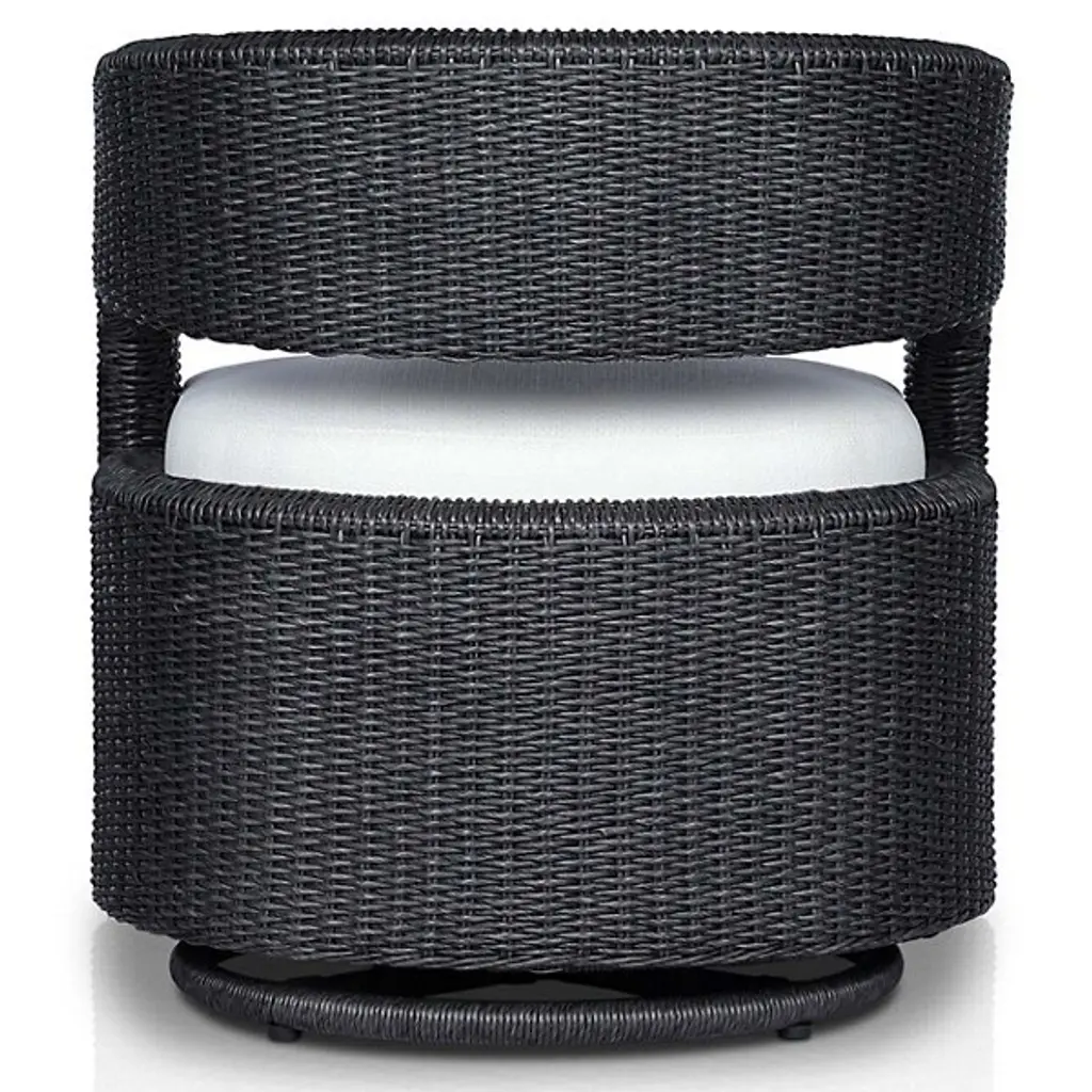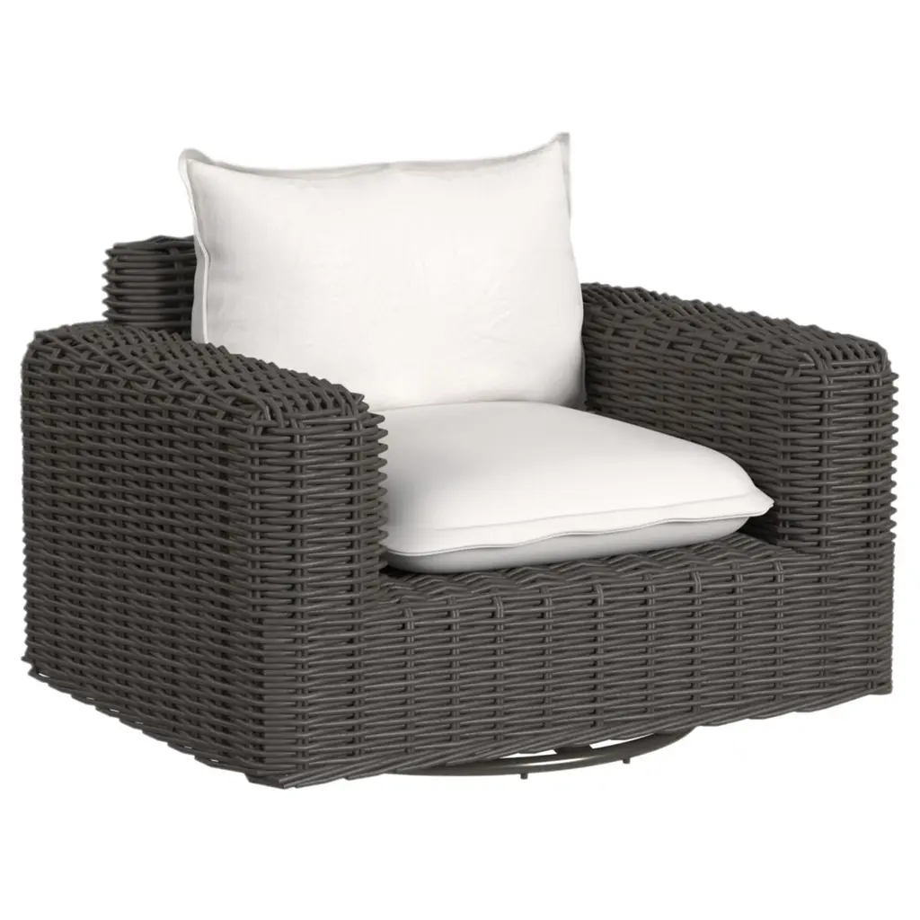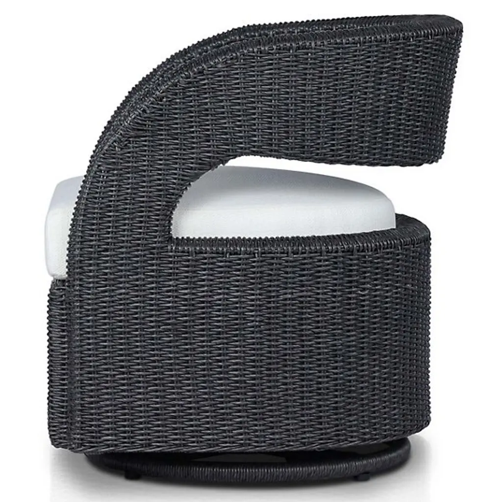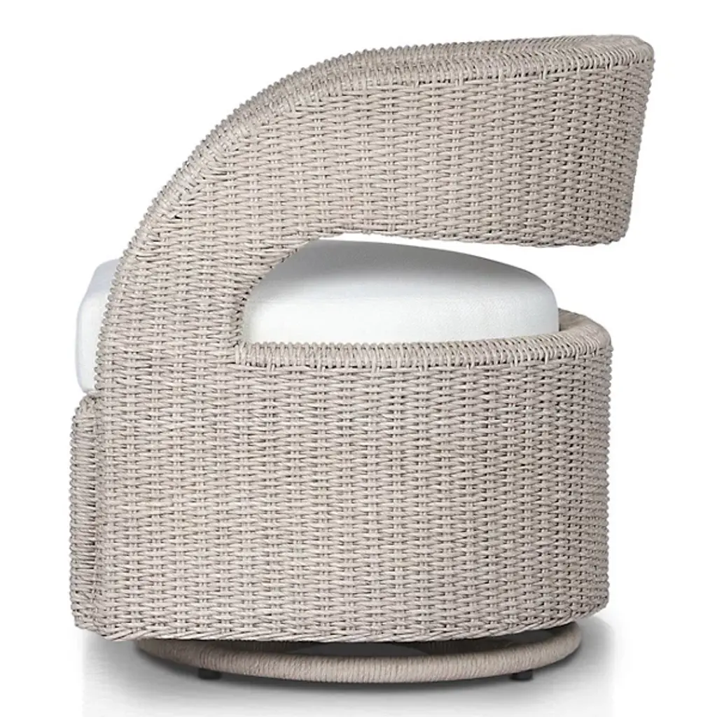 The Hawkins Outdoor Swivel Chair from Four Hands is made with the quintessential contours and open profile of the Hawkins family. It is built to withstand the elements easily and boasts swivel capability for 360 degrees of movement. It has UV-resistant, water-repellent quick-drying abilities. Hawkins comprises Olefin and an intricate polyethylene weave. Its fabric features a comfy 91% polyurethane foam pad and 9% polyester fiber. 100% polyethylene filler adds the finishing touch.