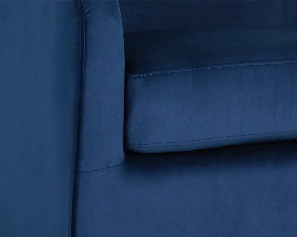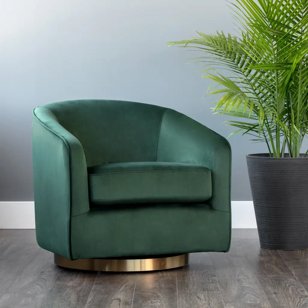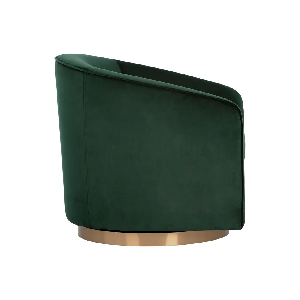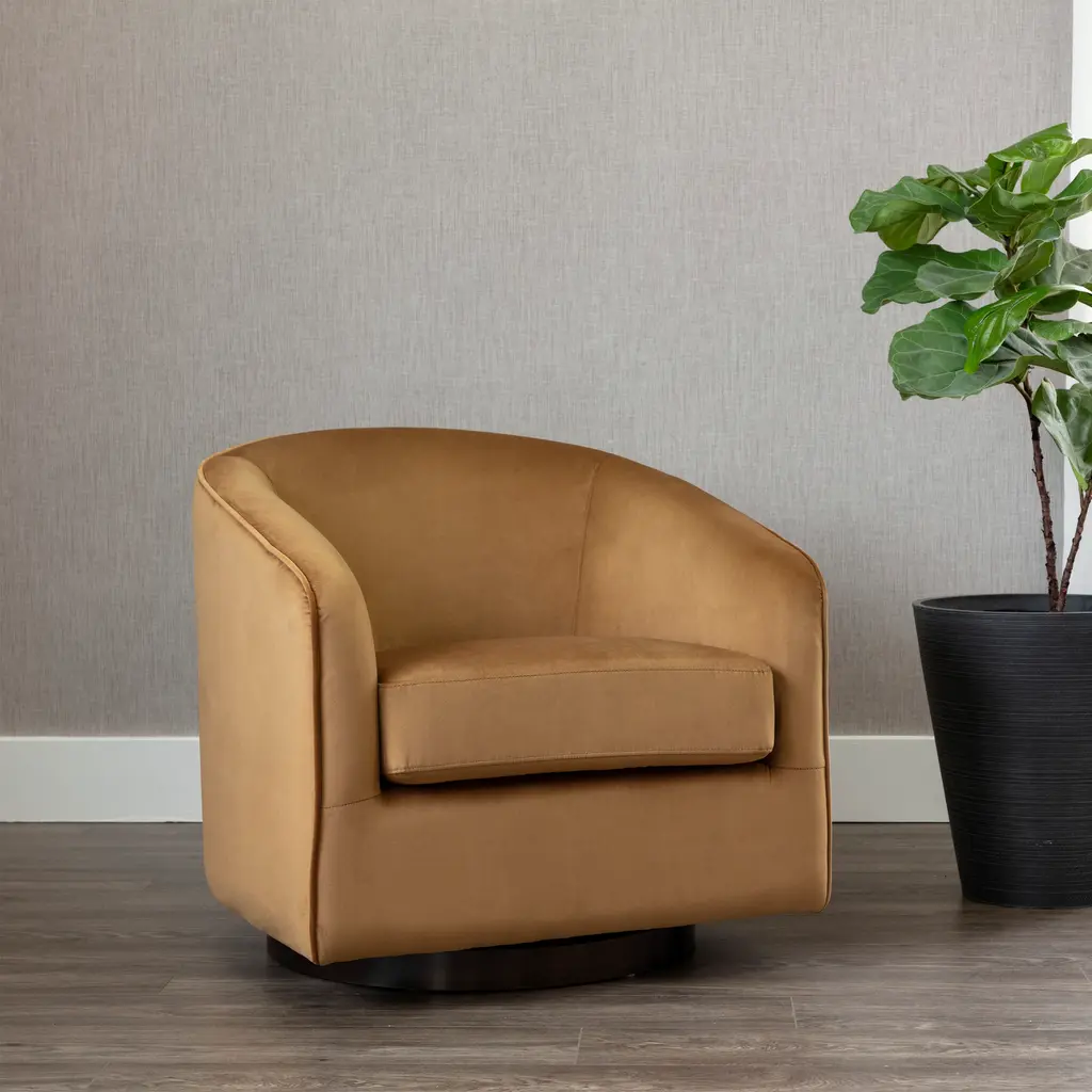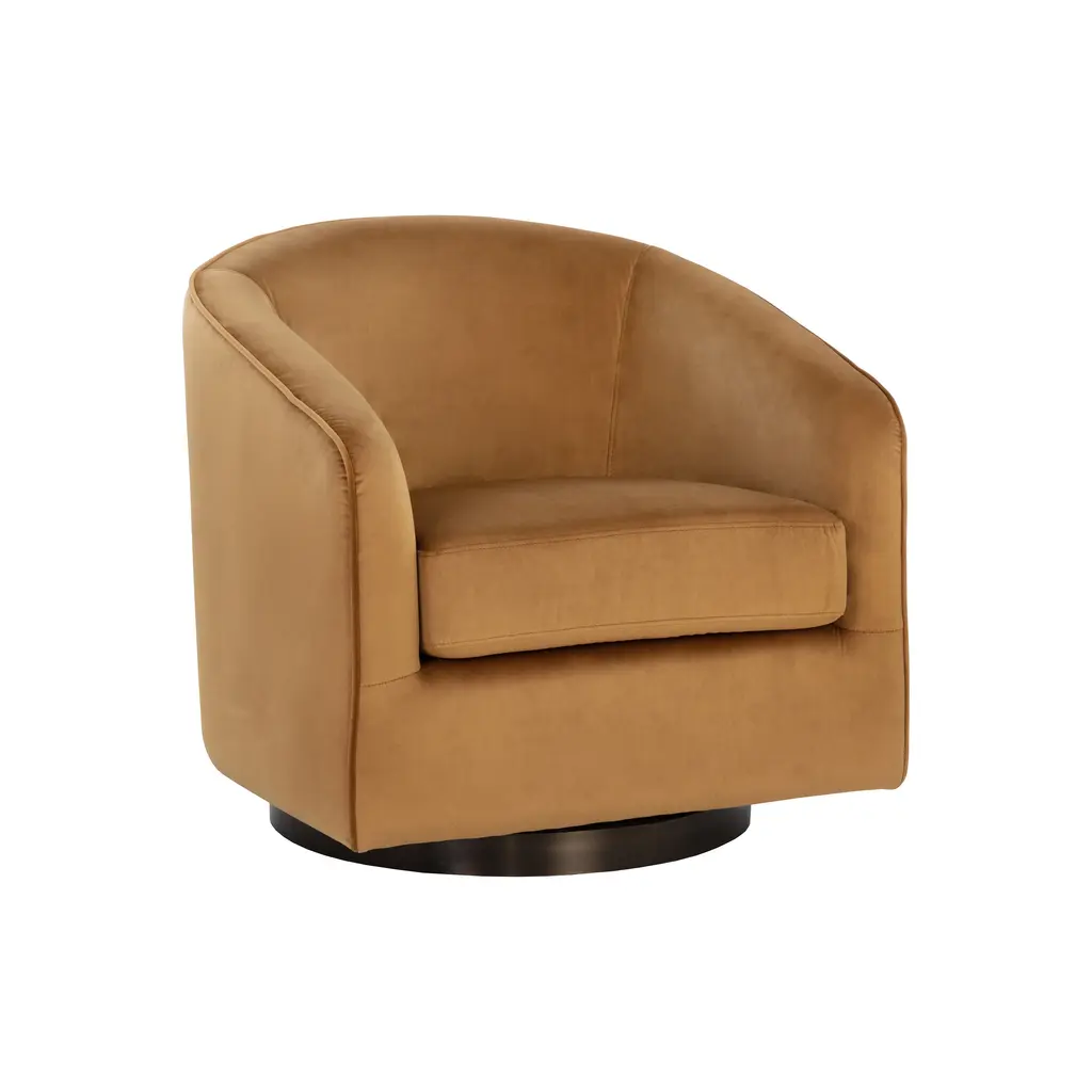 The Hazel Swivel Lounge Armchair from Sunpan is a luxurious addition to any space. Its unique barrel back design adds a touch of sophistication, while its 360 degree swivel feature allows for maximum comfort and convenience. Whether in a living room, lounge, or office, this chair is the perfect combination of style and comfort. Complete with a stainless steel round base for a sleek and modern look. Highlights