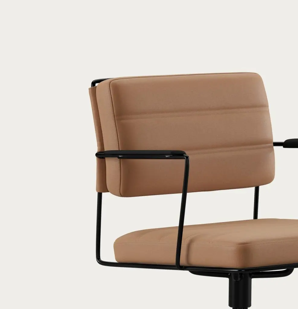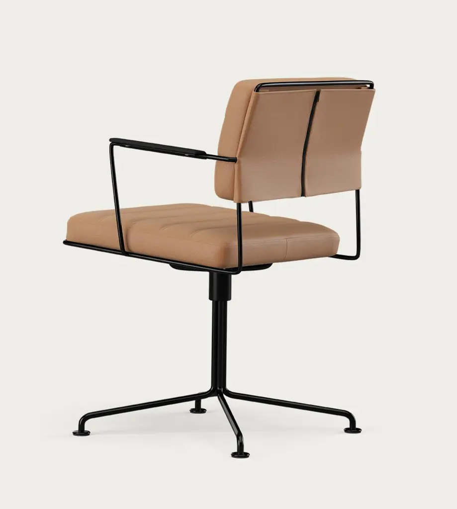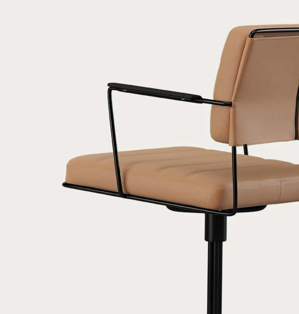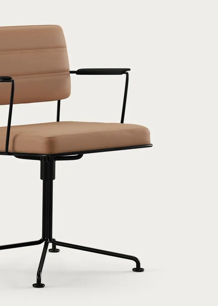 Henrik Tengler Time Chair Frame: Black, Upholstery: Silt For One Collection The Time Chair, designed by Henrik Tengler in 2012, is a dynamic and comfortable conference chair. Its design deliberately diverges from passing trends, instead embracing the cosmopolitan functionalism of the Bauhaus period. The chair features an innovative steel construction that balances aesthetics and strength while maintaining a minimalist appearance. Its ergonomic design ensures a comfortable and supportive seating experience throughout the day.The Time Chair is available in either chrome or black-painted steel with upholstery in leather or textile. Additionally, you can choose between two configurations: one with four legs and a swivel function or another with five legs, wheels, and an adjustable seat.General InfoDesign by: Henrik TenglerYear: 2012Dimensions:W 57cm x D 55cm x H 80cmSeat height: 46cmSpecificationsModel and materials:HT 2012Chrome or black painted, 4-star frame with feet, incl. swivel.Upholstery: Fabric or leather.To the naked eye, the Time Chair may appear simple and minimalist in its appearance. However, behind its simplicity lies a design that pushes the boundaries of how a chair can be composed. The chair was designed in 2012 and is characterized by Henrik Tengler’s focus on functionality and his innovative approach to working with materials. The chair’s frame has been reduced to the bare minimum and challenges the limits of what the material can support. The wire in the frame is made from specially crafted steel, ensuring the chair’s durability and strength, thereby allowing it to maintain its functional and aesthetic expression.Important information regarding images of products:Please note that some of the images show other colors and variations of the model, these images are only to present interior design proposals. The item that is selling is on the first image.Important information regarding color(s) of products:Actual colors may vary. This is due to the fact that every computer monitor, laptop, tablet and phone screen has a different capability to display colors and that everyone sees these colors differently. We try to edit our photos to show all of our products as life-like as possible, but please understand the actual color may vary slightly from your monitor.About Designer: Henrik Tengler graduated from The Royal Danish Academy of Fine Arts in 1988 and has more than 26 years of experience with furniture design and interior design. In 1992 Onecollection put the first chair from Henrik Tengler into production. The chair named Chairman later on became Onecollection’s best selling piece of furniture with more than 50.000 sold to date.Henrik Tengler has frequently contributed to what characterizes Onecollection’s furniture collection – stylish, yet functional quality designs. Over the years Henrik Tengler has created innovative and timeless solutions, whether it has been furniture or interior projects around the world.Henrik Tengler has also designed the tableseries Train, eZone and the Time Chair which have become classics for modern offices and conference rooms.About Manufacture:From our location in a small spot as far west as you can go in Denmark, we’ve captivated clients worldwide, ensuring they believe in our projects. While our journey encountered its share of challenges, our unwavering passion and enthusiasm have continuously persuaded stakeholders, including initially skeptical banks, to support us. This perpetual commitment and belief in OneCollection are why our presence continues to thrive today.Established by Ivan Hansen and Hans Henrik Sørensen in 1990, the main ownership remains with the two founders who guide a team passionately dedicated to the values and mission of the company.From the very beginning, our journey has been self-propelled, building a reputable furniture business grounded in core principles such as passion, quality, collaboration, trust, and humour. Our depth of knowledge in the furniture industry and exceptional Danish furniture design has been pivotal, coupled with a perpetual desire to work autonomously, ensuring freedom and responsibility in our decision-making processes.Driven by a perpetual ambition to elevate OneCollection as one of Denmark’s paramount design companies, we have always strived for excellence in crafting culturally significant, high-standard furniture designs. Our path has often strayed from the conventional, embracing a unique and sometimes unacademic approach, fueling our journey through intuition and courage to stand alone when necessary.Envisioning our future, we stand firmly as a free and independent company, opting for organic growth that is firmly rooted in our values.