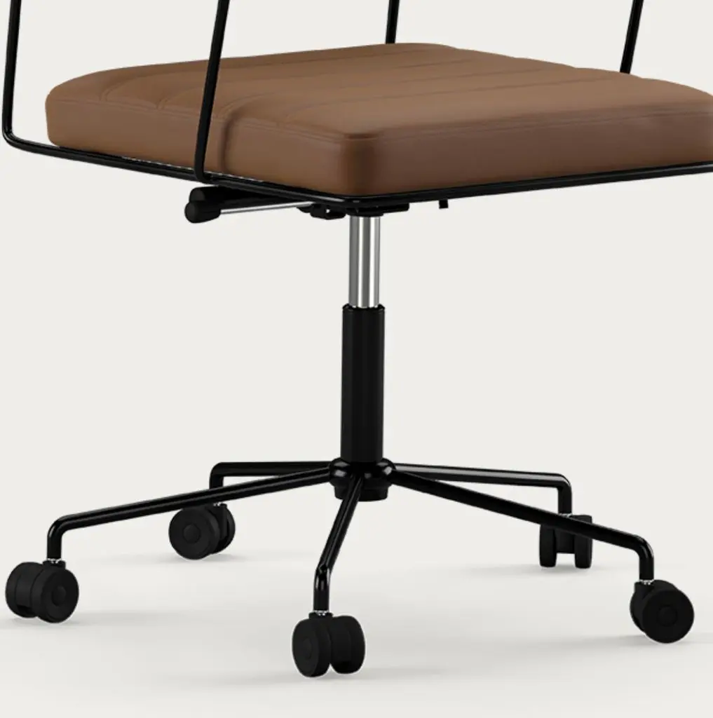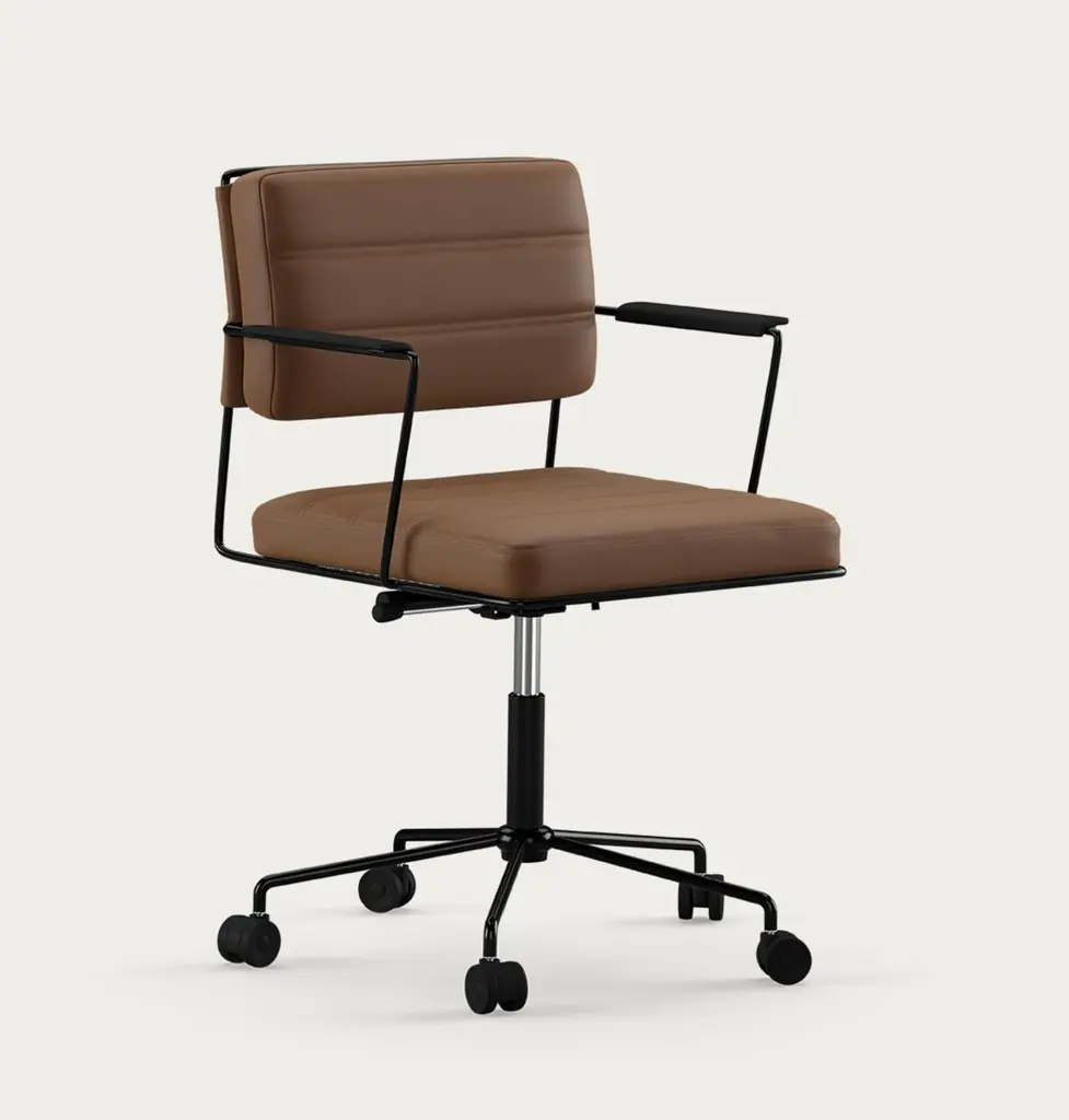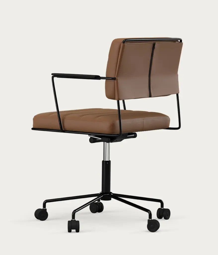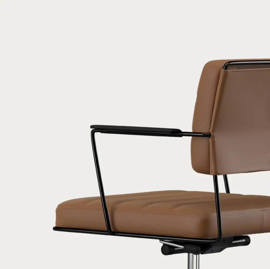 Henrik Tengler Time Chair Frame: Black, Upholstery: Umber For One Collection The Time Chair, designed by Henrik Tengler in 2012, is a dynamic and comfortable conference chair. Its design deliberately diverges from passing trends, instead embracing the cosmopolitan functionalism of the Bauhaus period. The chair features an innovative steel construction that balances aesthetics and strength while maintaining a minimalist appearance. Its ergonomic design ensures a comfortable and supportive seating experience throughout the day.The Time Chair is available in either chrome or black-painted steel with upholstery in leather or textile. Additionally, you can choose between two configurations: one with four legs and a swivel function or another with five legs, wheels, and an adjustable seat.General InfoDesign by: Henrik TenglerYear: 2012Dimensions:W 57cm x D 55cm x H 80cmSeat height: 42-53cm (lift version)SpecificationsModel and materials:HT 2014Chrome or black painted, 5-star frame with castors, incl. gas lift, swivel and tilt.Upholstery: Fabric or leather.To the naked eye, the Time Chair may appear simple and minimalist in its appearance. However, behind its simplicity lies a design that pushes the boundaries of how a chair can be composed. The chair was designed in 2012 and is characterized by Henrik Tengler’s focus on functionality and his innovative approach to working with materials. The chair’s frame has been reduced to the bare minimum and challenges the limits of what the material can support. The wire in the frame is made from specially crafted steel, ensuring the chair’s durability and strength, thereby allowing it to maintain its functional and aesthetic expression.Important information regarding images of products:Please note that some of the images show other colors and variations of the model, these images are only to present interior design proposals. The item that is selling is on the first image.Important information regarding color(s) of products:Actual colors may vary. This is due to the fact that every computer monitor, laptop, tablet and phone screen has a different capability to display colors and that everyone sees these colors differently. We try to edit our photos to show all of our products as life-like as possible, but please understand the actual color may vary slightly from your monitor.About Designer: Henrik Tengler graduated from The Royal Danish Academy of Fine Arts in 1988 and has more than 26 years of experience with furniture design and interior design. In 1992 Onecollection put the first chair from Henrik Tengler into production. The chair named Chairman later on became Onecollection’s best selling piece of furniture with more than 50.000 sold to date.Henrik Tengler has frequently contributed to what characterizes Onecollection’s furniture collection – stylish, yet functional quality designs. Over the years Henrik Tengler has created innovative and timeless solutions, whether it has been furniture or interior projects around the world.Henrik Tengler has also designed the tableseries Train, eZone and the Time Chair which have become classics for modern offices and conference rooms.About Manufacture:From our location in a small spot as far west as you can go in Denmark, we’ve captivated clients worldwide, ensuring they believe in our projects. While our journey encountered its share of challenges, our unwavering passion and enthusiasm have continuously persuaded stakeholders, including initially skeptical banks, to support us. This perpetual commitment and belief in OneCollection are why our presence continues to thrive today.Established by Ivan Hansen and Hans Henrik Sørensen in 1990, the main ownership remains with the two founders who guide a team passionately dedicated to the values and mission of the company.From the very beginning, our journey has been self-propelled, building a reputable furniture business grounded in core principles such as passion, quality, collaboration, trust, and humour. Our depth of knowledge in the furniture industry and exceptional Danish furniture design has been pivotal, coupled with a perpetual desire to work autonomously, ensuring freedom and responsibility in our decision-making processes.Driven by a perpetual ambition to elevate OneCollection as one of Denmark’s paramount design companies, we have always strived for excellence in crafting culturally significant, high-standard furniture designs. Our path has often strayed from the conventional, embracing a unique and sometimes unacademic approach, fueling our journey through intuition and courage to stand alone when necessary.Envisioning our future, we stand firmly as a free and independent company, opting for organic growth that is firmly rooted in our values.