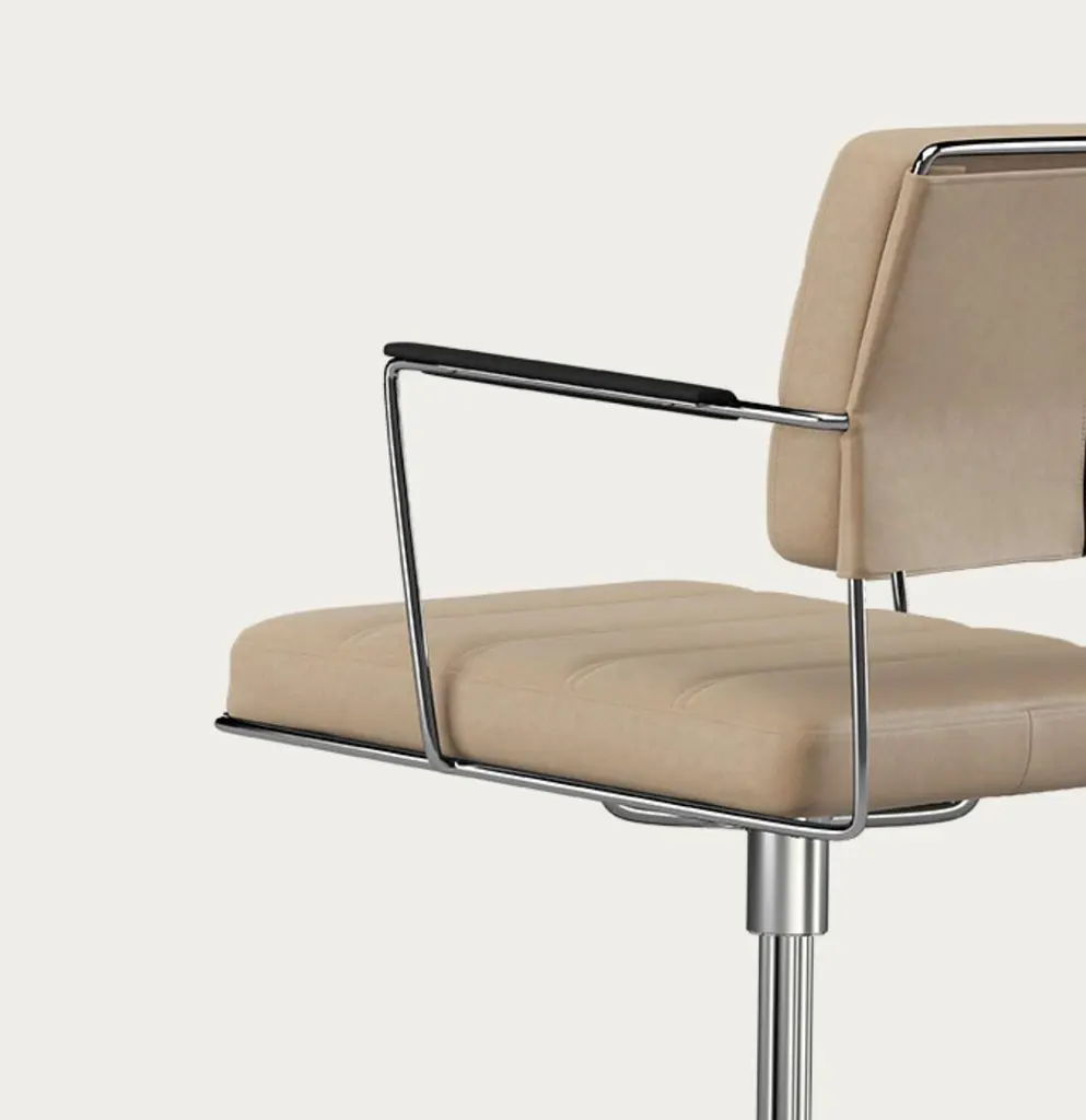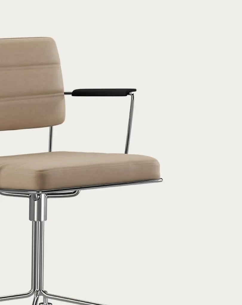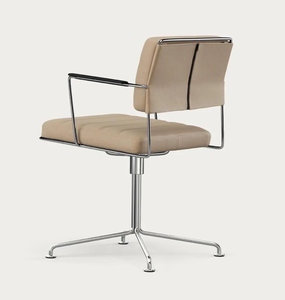 Henrik Tengler Time Chair Frame: Chrome Upholstery: Lime For One Collection The Time Chair, designed by Henrik Tengler in 2012, is a dynamic and comfortable conference chair. Its design deliberately diverges from passing trends, instead embracing the cosmopolitan functionalism of the Bauhaus period. The chair features an innovative steel construction that balances aesthetics and strength while maintaining a minimalist appearance. Its ergonomic design ensures a comfortable and supportive seating experience throughout the day.The Time Chair is available in either chrome or black-painted steel with upholstery in leather or textile. Additionally, you can choose between two configurations: one with four legs and a swivel function or another with five legs, wheels, and an adjustable seat.General InfoDesign by: Henrik TenglerYear: 2012Dimensions:W 57cm x D 55cm x H 80cmSeat height: 46cmSpecificationsModel and materials:HT 2012Chrome or black painted, 4-star frame with feet, incl. swivel.Upholstery: Fabric or leather.To the naked eye, the Time Chair may appear simple and minimalist in its appearance. However, behind its simplicity lies a design that pushes the boundaries of how a chair can be composed. The chair was designed in 2012 and is characterized by Henrik Tengler’s focus on functionality and his innovative approach to working with materials. The chair’s frame has been reduced to the bare minimum and challenges the limits of what the material can support. The wire in the frame is made from specially crafted steel, ensuring the chair’s durability and strength, thereby allowing it to maintain its functional and aesthetic expression.Important information regarding images of products:Please note that some of the images show other colors and variations of the model, these images are only to present interior design proposals. The item that is selling is on the first image.Important information regarding color(s) of products:Actual colors may vary. This is due to the fact that every computer monitor, laptop, tablet and phone screen has a different capability to display colors and that everyone sees these colors differently. We try to edit our photos to show all of our products as life-like as possible, but please understand the actual color may vary slightly from your monitor.About Designer: Henrik Tengler graduated from The Royal Danish Academy of Fine Arts in 1988 and has more than 26 years of experience with furniture design and interior design. In 1992 Onecollection put the first chair from Henrik Tengler into production. The chair named Chairman later on became Onecollection’s best selling piece of furniture with more than 50.000 sold to date.Henrik Tengler has frequently contributed to what characterizes Onecollection’s furniture collection – stylish, yet functional quality designs. Over the years Henrik Tengler has created innovative and timeless solutions, whether it has been furniture or interior projects around the world.Henrik Tengler has also designed the tableseries Train, eZone and the Time Chair which have become classics for modern offices and conference rooms.About Manufacture:From our location in a small spot as far west as you can go in Denmark, we’ve captivated clients worldwide, ensuring they believe in our projects. While our journey encountered its share of challenges, our unwavering passion and enthusiasm have continuously persuaded stakeholders, including initially skeptical banks, to support us. This perpetual commitment and belief in OneCollection are why our presence continues to thrive today.Established by Ivan Hansen and Hans Henrik Sørensen in 1990, the main ownership remains with the two founders who guide a team passionately dedicated to the values and mission of the company.From the very beginning, our journey has been self-propelled, building a reputable furniture business grounded in core principles such as passion, quality, collaboration, trust, and humour. Our depth of knowledge in the furniture industry and exceptional Danish furniture design has been pivotal, coupled with a perpetual desire to work autonomously, ensuring freedom and responsibility in our decision-making processes.Driven by a perpetual ambition to elevate OneCollection as one of Denmark’s paramount design companies, we have always strived for excellence in crafting culturally significant, high-standard furniture designs. Our path has often strayed from the conventional, embracing a unique and sometimes unacademic approach, fueling our journey through intuition and courage to stand alone when necessary.Envisioning our future, we stand firmly as a free and independent company, opting for organic growth that is firmly rooted in our values.