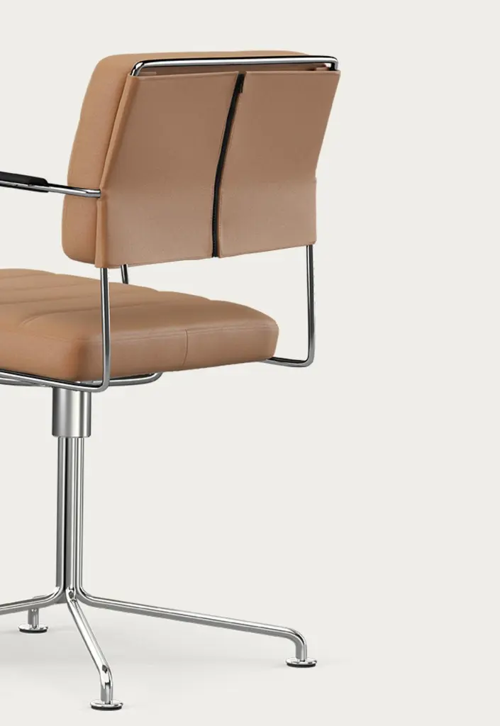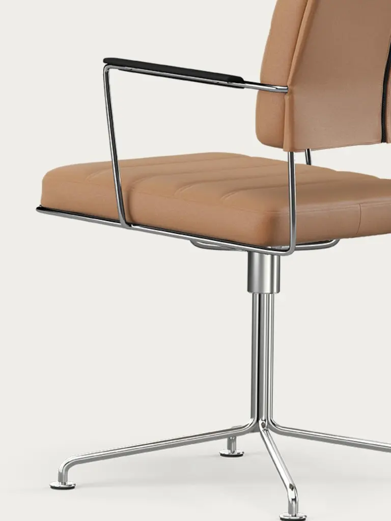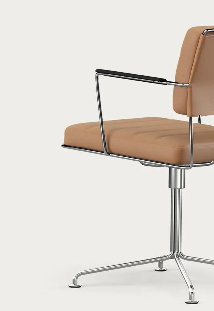 Henrik Tengler Time Chair Frame: Chrome Upholstery: Silt For One Collection The Time Chair, designed by Henrik Tengler in 2012, is a dynamic and comfortable conference chair. Its design deliberately diverges from passing trends, instead embracing the cosmopolitan functionalism of the Bauhaus period. The chair features an innovative steel construction that balances aesthetics and strength while maintaining a minimalist appearance. Its ergonomic design ensures a comfortable and supportive seating experience throughout the day.The Time Chair is available in either chrome or black-painted steel with upholstery in leather or textile. Additionally, you can choose between two configurations: one with four legs and a swivel function or another with five legs, wheels, and an adjustable seat.General InfoDesign by: Henrik TenglerYear: 2012Dimensions:W 57cm x D 55cm x H 80cmSeat height: 46cmSpecificationsModel and materials:HT 2012Chrome or black painted, 4-star frame with feet, incl. swivel.Upholstery: Fabric or leather.To the naked eye, the Time Chair may appear simple and minimalist in its appearance. However, behind its simplicity lies a design that pushes the boundaries of how a chair can be composed. The chair was designed in 2012 and is characterized by Henrik Tengler’s focus on functionality and his innovative approach to working with materials. The chair’s frame has been reduced to the bare minimum and challenges the limits of what the material can support. The wire in the frame is made from specially crafted steel, ensuring the chair’s durability and strength, thereby allowing it to maintain its functional and aesthetic expression.Important information regarding images of products:Please note that some of the images show other colors and variations of the model, these images are only to present interior design proposals. The item that is selling is on the first image.Important information regarding color(s) of products:Actual colors may vary. This is due to the fact that every computer monitor, laptop, tablet and phone screen has a different capability to display colors and that everyone sees these colors differently. We try to edit our photos to show all of our products as life-like as possible, but please understand the actual color may vary slightly from your monitor.About Designer: Henrik Tengler graduated from The Royal Danish Academy of Fine Arts in 1988 and has more than 26 years of experience with furniture design and interior design. In 1992 Onecollection put the first chair from Henrik Tengler into production. The chair named Chairman later on became Onecollection’s best selling piece of furniture with more than 50.000 sold to date.Henrik Tengler has frequently contributed to what characterizes Onecollection’s furniture collection – stylish, yet functional quality designs. Over the years Henrik Tengler has created innovative and timeless solutions, whether it has been furniture or interior projects around the world.Henrik Tengler has also designed the tableseries Train, eZone and the Time Chair which have become classics for modern offices and conference rooms.About Manufacture:From our location in a small spot as far west as you can go in Denmark, we’ve captivated clients worldwide, ensuring they believe in our projects. While our journey encountered its share of challenges, our unwavering passion and enthusiasm have continuously persuaded stakeholders, including initially skeptical banks, to support us. This perpetual commitment and belief in OneCollection are why our presence continues to thrive today.Established by Ivan Hansen and Hans Henrik Sørensen in 1990, the main ownership remains with the two founders who guide a team passionately dedicated to the values and mission of the company.From the very beginning, our journey has been self-propelled, building a reputable furniture business grounded in core principles such as passion, quality, collaboration, trust, and humour. Our depth of knowledge in the furniture industry and exceptional Danish furniture design has been pivotal, coupled with a perpetual desire to work autonomously, ensuring freedom and responsibility in our decision-making processes.Driven by a perpetual ambition to elevate OneCollection as one of Denmark’s paramount design companies, we have always strived for excellence in crafting culturally significant, high-standard furniture designs. Our path has often strayed from the conventional, embracing a unique and sometimes unacademic approach, fueling our journey through intuition and courage to stand alone when necessary.Envisioning our future, we stand firmly as a free and independent company, opting for organic growth that is firmly rooted in our values.
