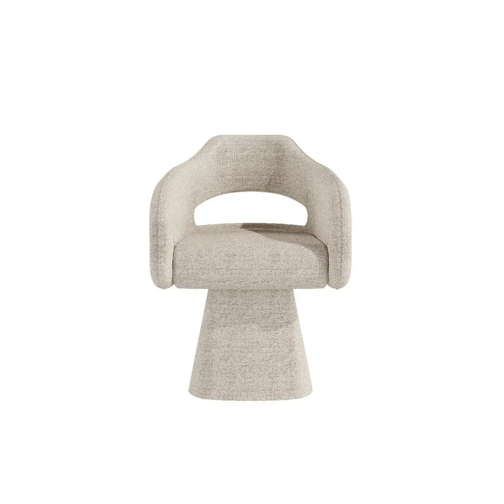 More of a design piece than a simple chair, Heritage is perfect for those who love to have a piece of furniture that stands out. This swivel dining chair brings a sense of elegance and importance to the room in which it is placed. Fully upholstered in fabric or leather, this chair will be the focal point of your dining room arrangement.Primary image:: show in upholstered with Plushy 100.Essence Collection celebrates the timeless beauty of organic shapes by combining painted woods, natural stones, and a palette of neutral tones to create a luxurious aesthetic.Our collection embodies the simplicity of luxury, where every detail is carefully selected to convey sophistication and quality. Each piece of furniture is a masterpiece of craftsmanship, reflecting the passion and dedication of our artisans.The passion to create high-quality luxurious furniture, capable of providing emotional experiences is the reason for our existence and continuous evolution.Experience the unique atmosphere created by our Essence Collection.