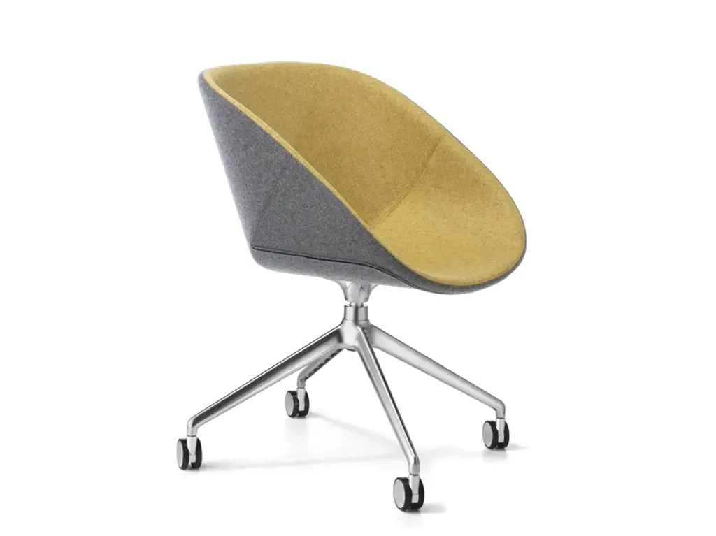 INNER FRAMEDouble radius stratified curved beech plywood, warm shaped, 14 mm thickness. Various wood essences are available. Foam moulded polyurethane, density 40 kg/m3.PADDINGSeat and backrest foam made of flexible polyurethane, crushproof, density D40/RC thickness 30 mm, rear backrest D40/RC thickness 0,5 mm. CFC-free.BEARING FRAMEUnion of two symmetrical bended shapes in beech, 14 mm thickness, foldaway combined through special glues and through 3 steel blades fixed with special screws Wurth®.BASEFour spoke swivel base made of lacquered die-cast aluminium, anti-slip glides assembled.Available FSC® certifiedThe simple and smooth lines, combined with a refined aesthetic structure, make Hibiscus a versatile chair able to change atmosphere and character according to the chosen color combinations. A refined chair which does not invade the space where it is located, suitable for public and private environments.