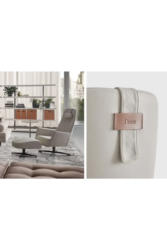 The Dema Valentina High-Back Modern Swivel Armchair exudes luxury and sophistication. Its steel frame is padded with embossed polyurethane foam for ultimate comfort, while the swivel base allows for smooth movement. Choose from a chrome or black nickel finish, and customize with fabric or leather coverings and a contrasting ribbon. The chair is fully removable for easy maintenance.