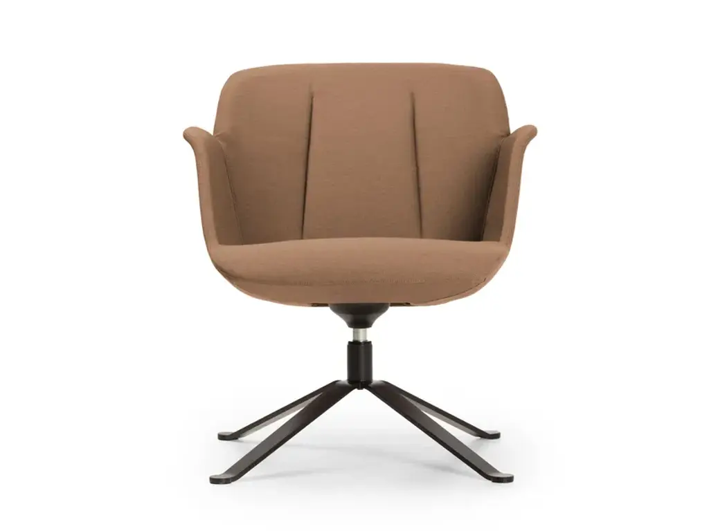 Hive is an upholstered and fabric-covered armchair with low backrest and aluminum trestle base.10 years after its debut in the market as an executive office chair and waiting armchair, Hive has been revisited and redesigned to adapt to the new needs of the lounge, waiting and hospitality segment.The new polyurethane shell is available in chair and armchair version with double backrest height. The design is characterized by the pronounced lines of the compact armrest and the stitching that shapes the backrest in a vertical direction. It is available with a solid wood 4 legs base or with a 4-spoke steel swivel base.