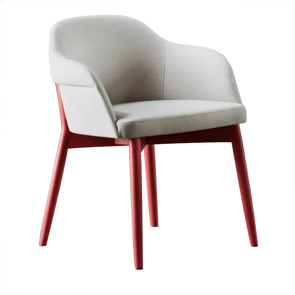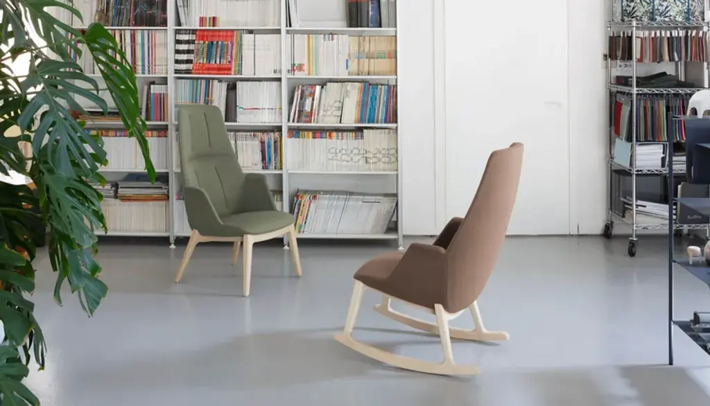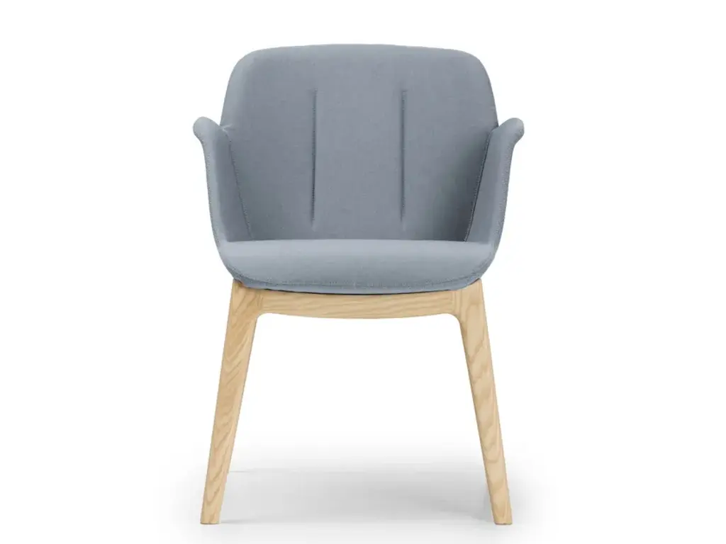 Hive is an upholstered and fabric covered armchair with high back and wooden base.10 years after its debut in the market as an executive office chair and waiting armchair, Hive has been revisited and redesigned to adapt to the new needs of the lounge, waiting and hospitality segment.The new polyurethane shell is available in chair and armchair version with double backrest height. The design is characterized by the pronounced lines of the compact armrest and the stitching that shapes the backrest in a vertical direction. It is available with a solid wood 4 legs base or with a 4-spoke steel swivel base.