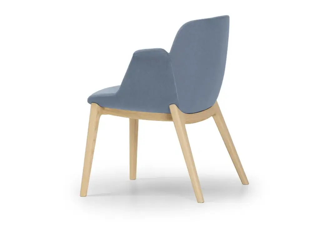 Hive is a chair with upholstered seat covered in fabric and wooden legs.10 years after its debut in the market as an executive office chair and waiting armchair, Hive has been revisited and redesigned to adapt to the new needs of the lounge, waiting and hospitality segment.The new polyurethane shell is available in chair and armchair version with double backrest height. The design is characterized by the pronounced lines of the compact armrest and the stitching that shapes the backrest in a vertical direction. It is available with a solid wood 4 legs base or with a 4-spoke steel swivel base.
