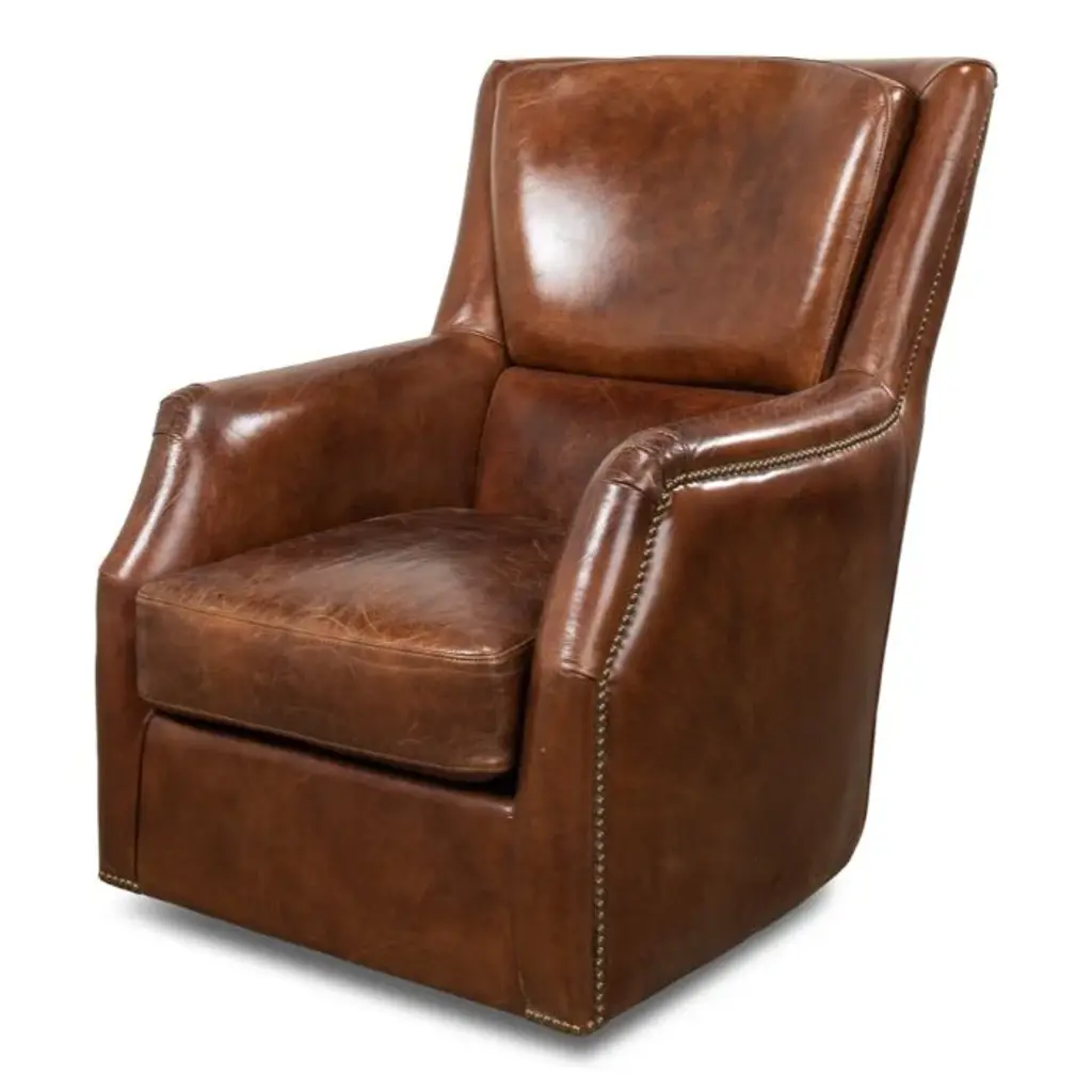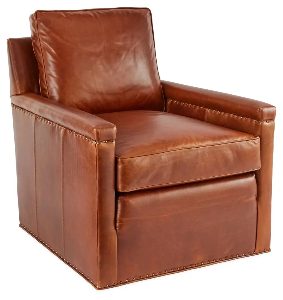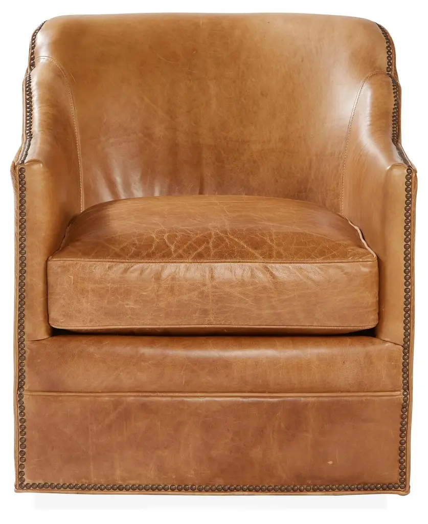 Hughes Swivel Chair, Camel Leather/hide