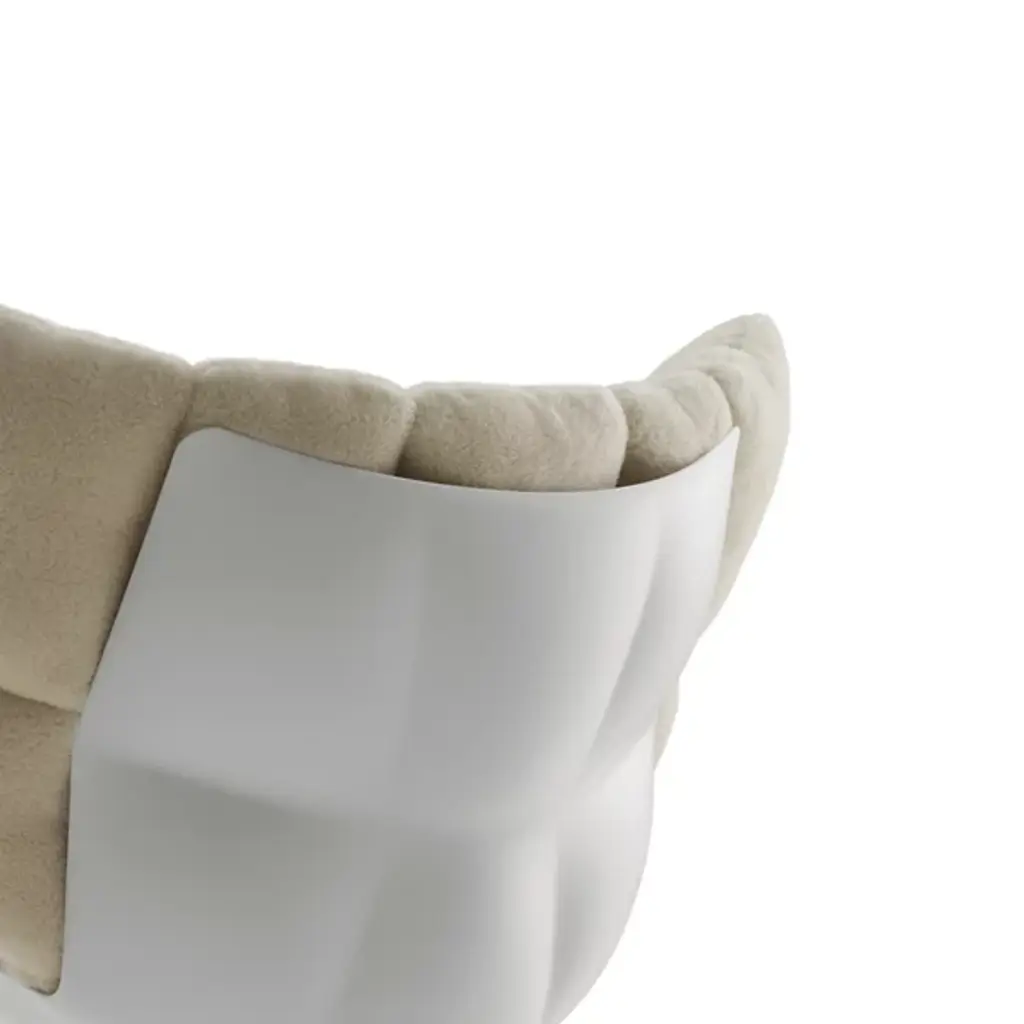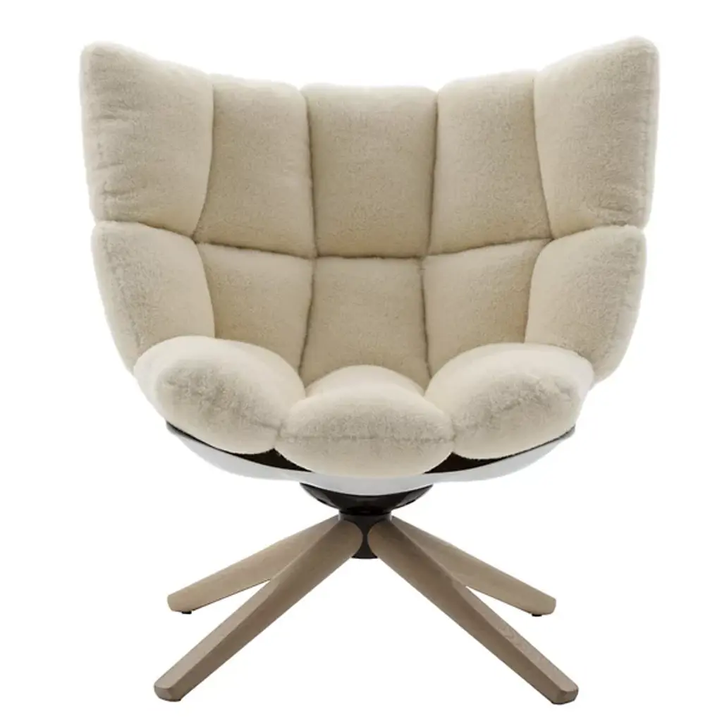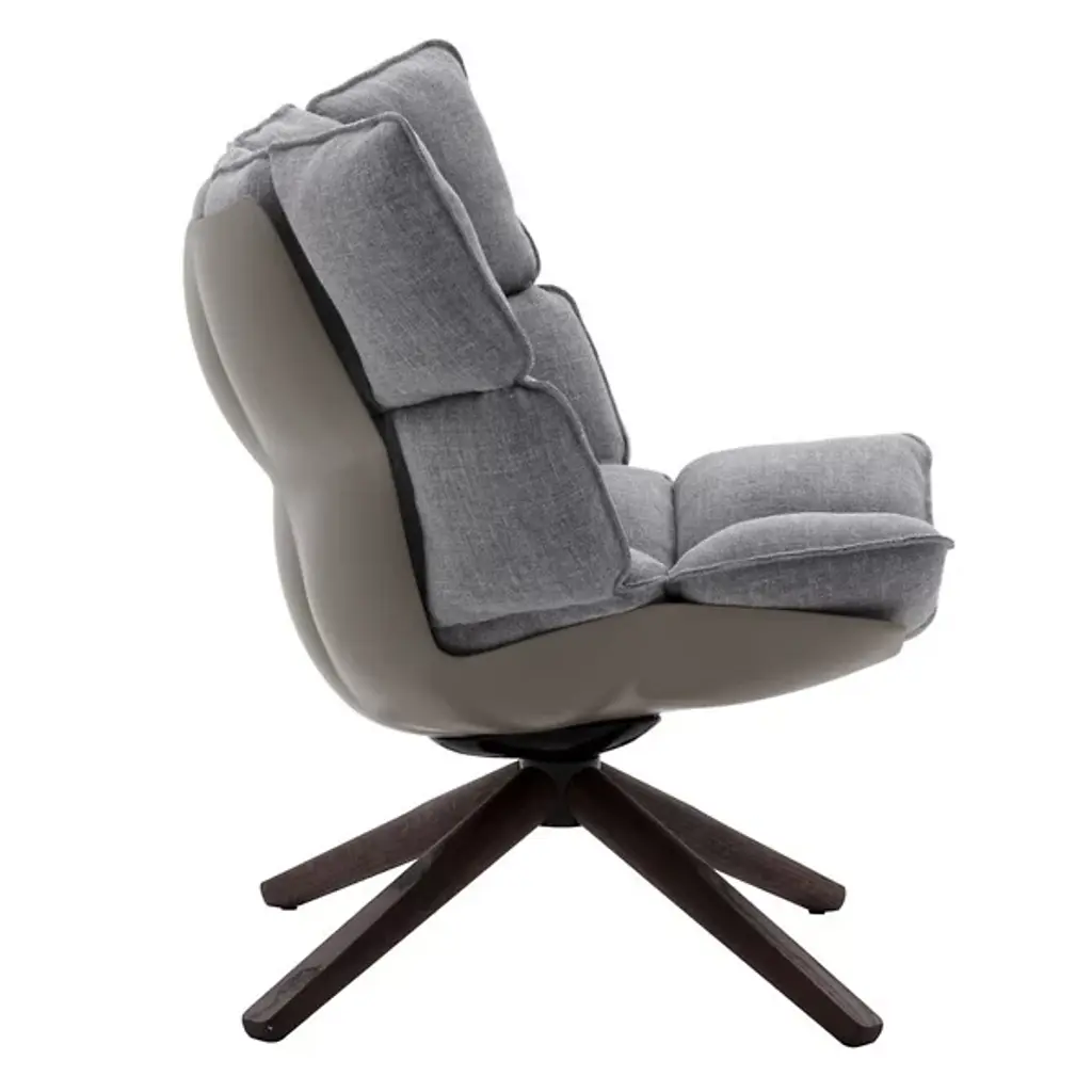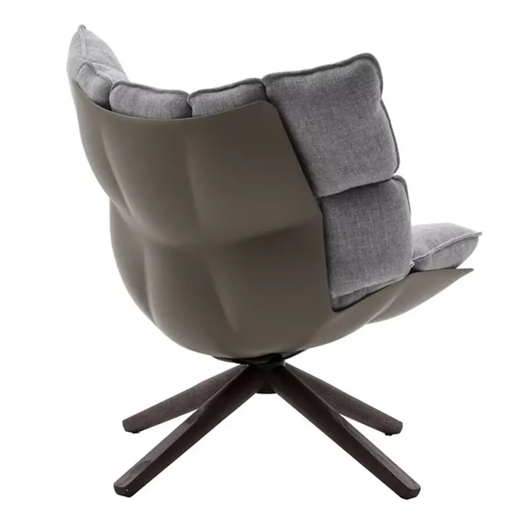The Husk Swivel Armchair from B&B Italia delivers a cozy seating experience with its pattern of plump, eco-sustainable cushioning. Designer Patricia Urquiola's work connects the familiar to the unexplored, a process that is shown in the classic materials and their artful presentation at play. Creating a flowy silhouette, the chair's seat shell packs a Hirek® plastic made from recycled and recyclable polymers. The capitonné style padded cushion is made to create a supportive, hugging sensation.